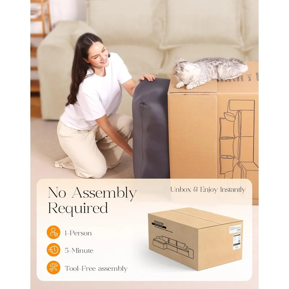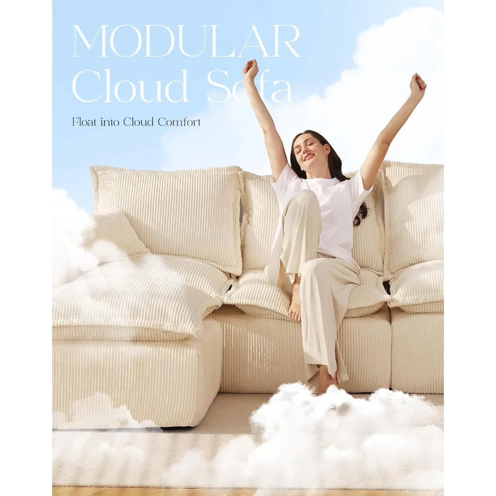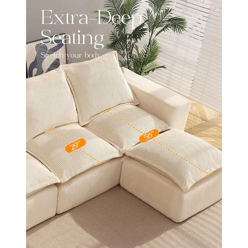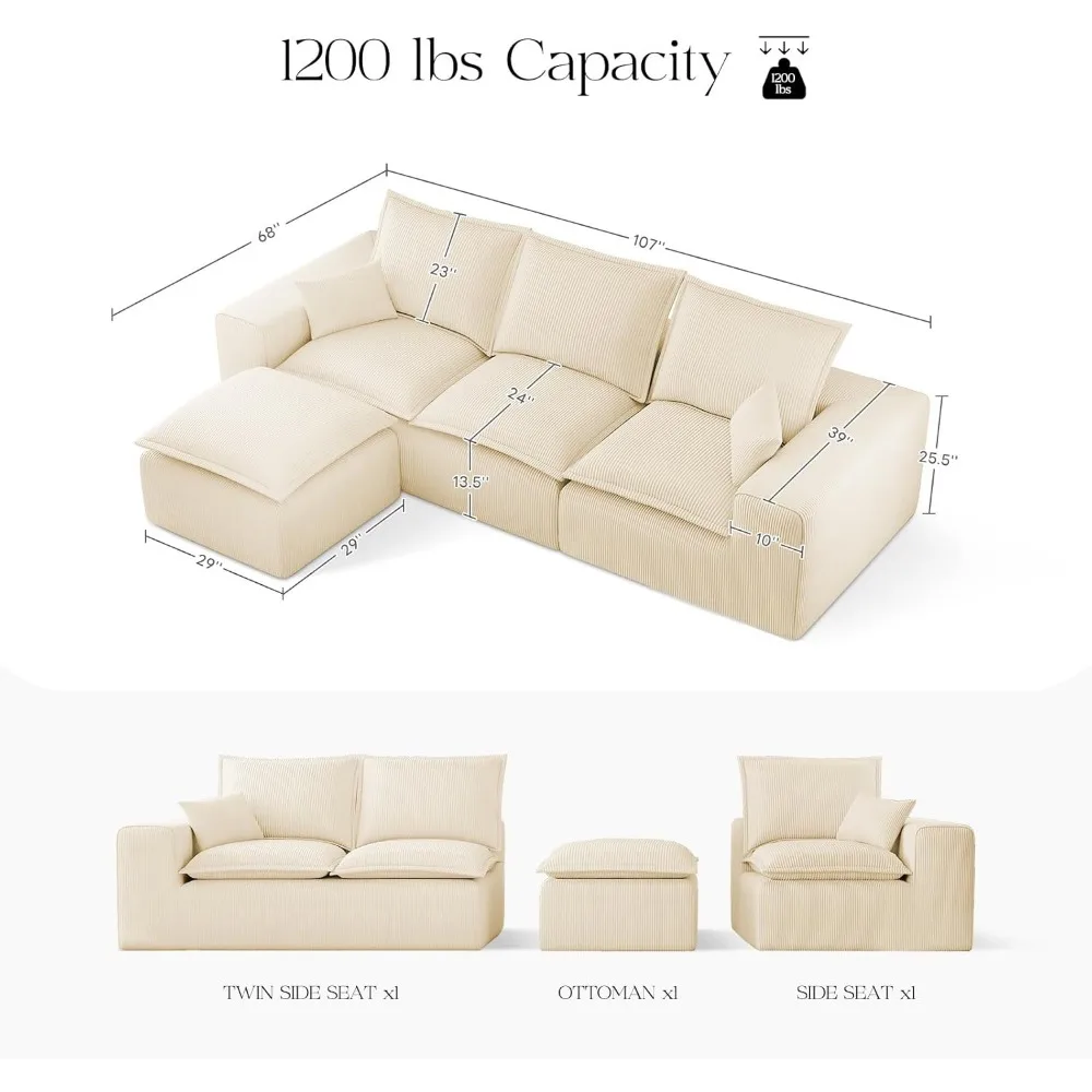 107" Comfy Cloud Couch with L-Shape Chaise & Deep Seat, Modular Sectional Sofa in a Box, Boneless Upholstered Couches for Living