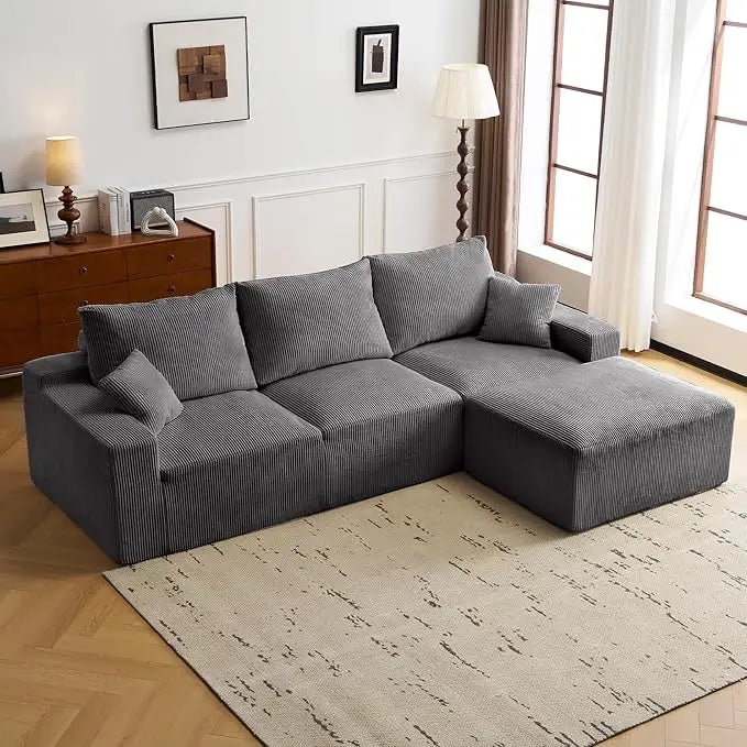 - DURABLE AND SOFT CORDUROY FABRIC: Indulge in the luxurious texture of high-quality corduroy. This durable fabric is not only incredibly soft to the touch but also designed for everyday life. Its dense weave and subtle vertical ridges offer excellent resistance to wear and tear, while being easy to clean. Available in beige and grey modern colors, this sofa para sala adds a layer of sophisticated style and lasting beauty to your home decor.