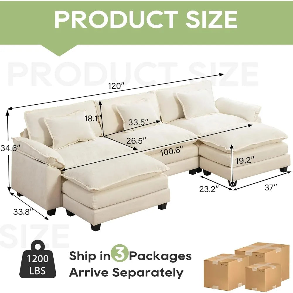 120" Modular Sectional Sofa, Comfy Cloud Couch Sectional Sofa with Ottoman, Chenille Sofa Sleeper Deep Seat Sofa with Throw Pill