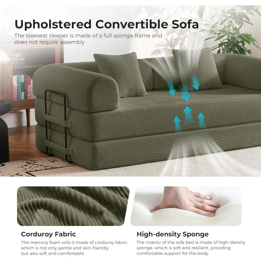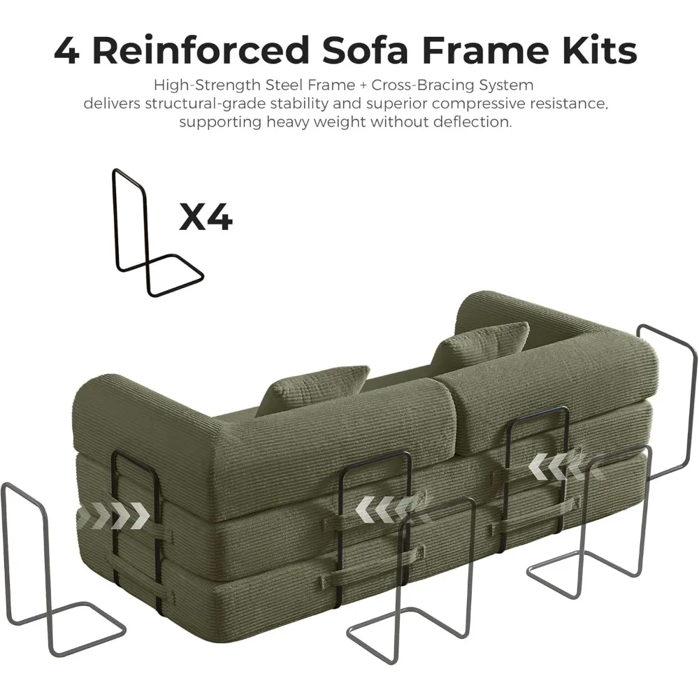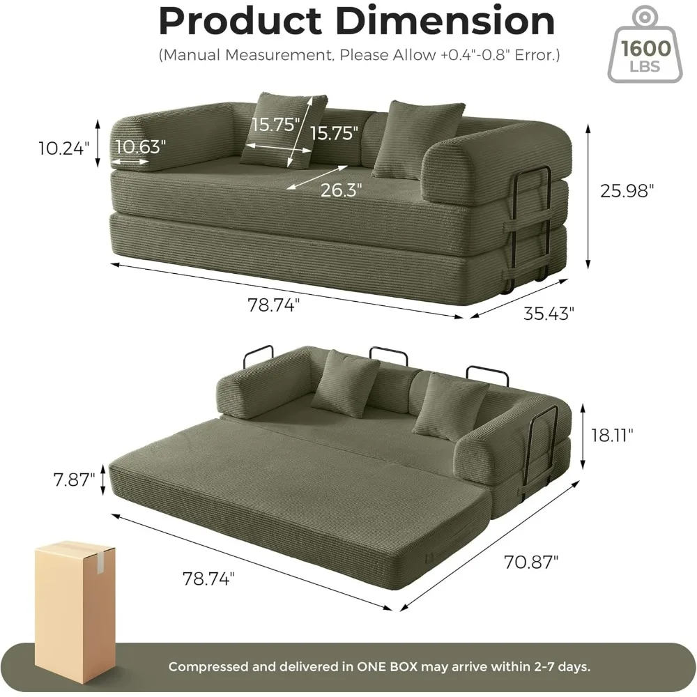 4-in-1 Convertible Sofa Bed with High-Resilience Memory Foam, 79" Oversized Corduroy Sleeper Futon, Modular Floor Couch with Fix