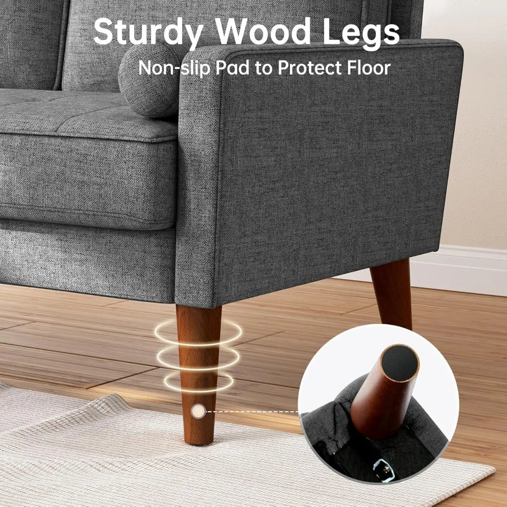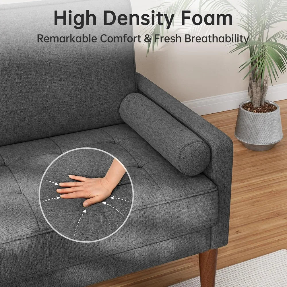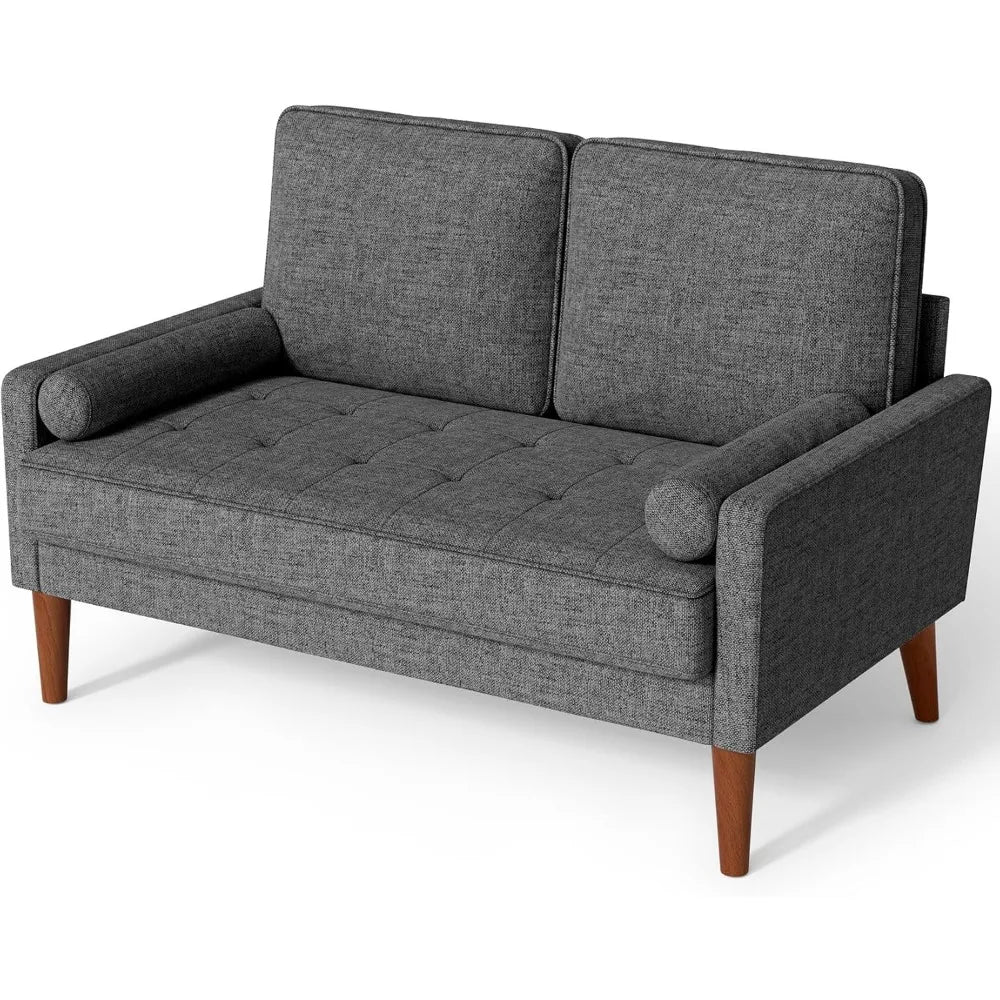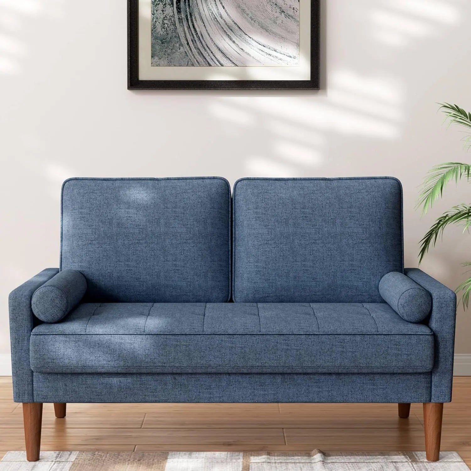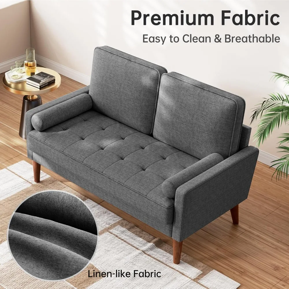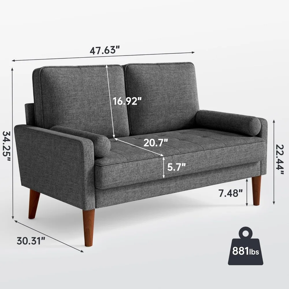 48" Sofa Loveseat, Mid Century Couch for Small Spaces, Bedroom and Living Room, Removable Cover Spring Cushions, Solid Wood Fram