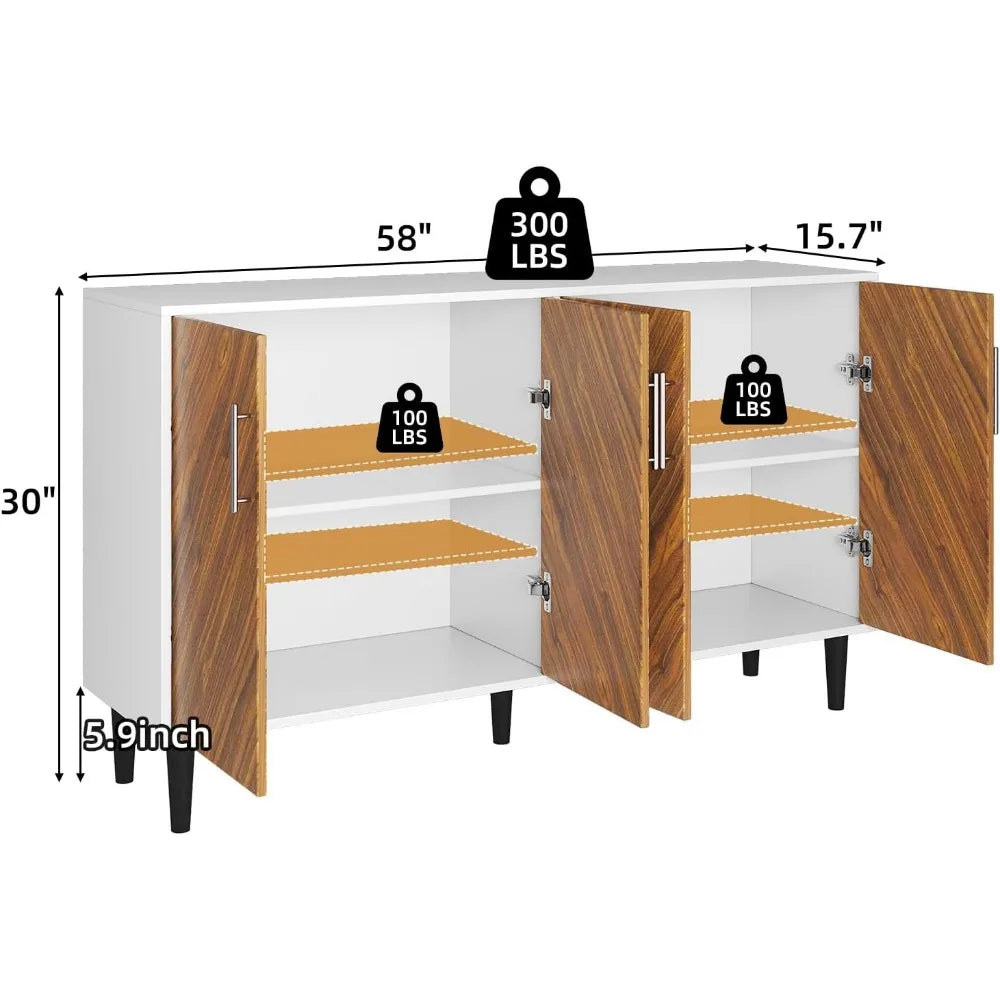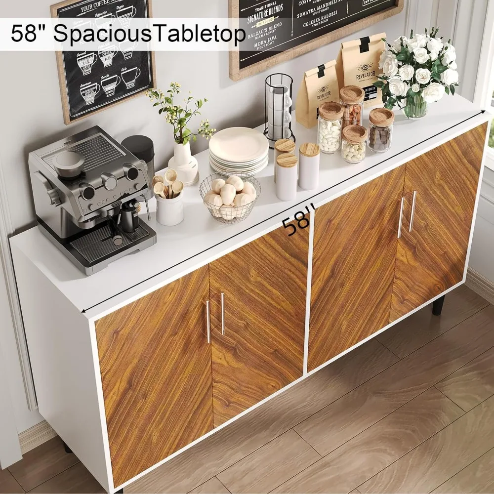 55" Sideboard Buffet Cabinet with Storage, Coffee Bar Cabinet with Adjustable Shelves, Kitchen Storage Cabinets wi