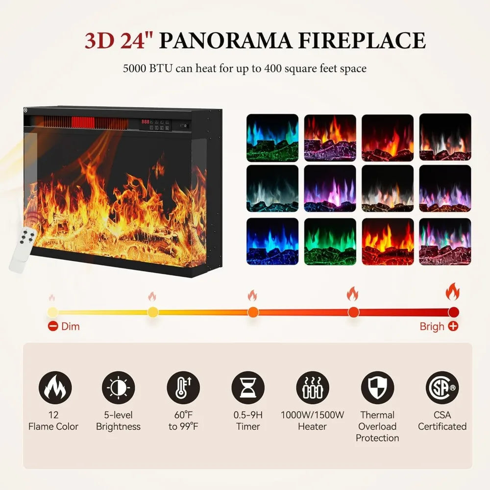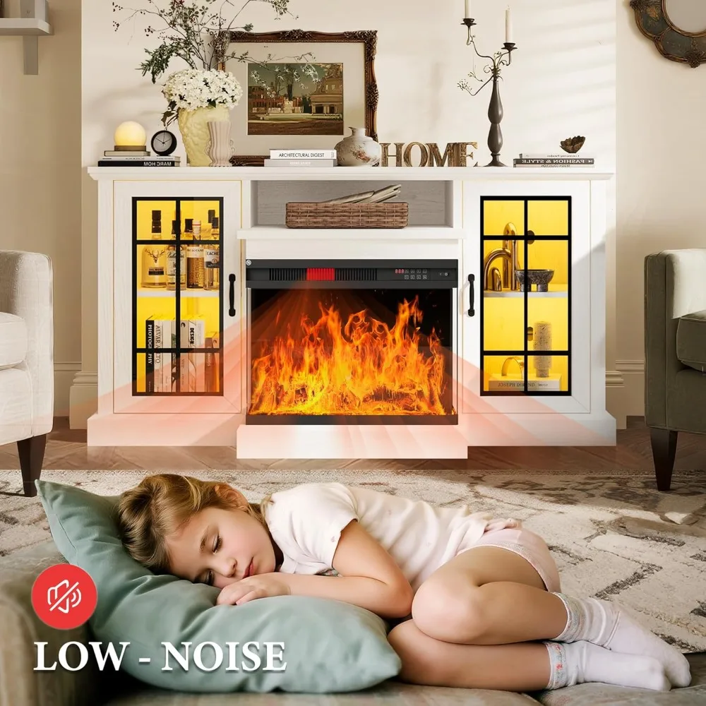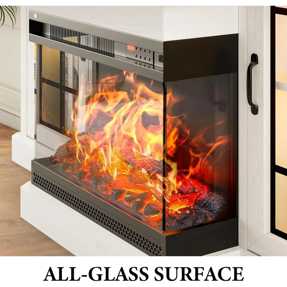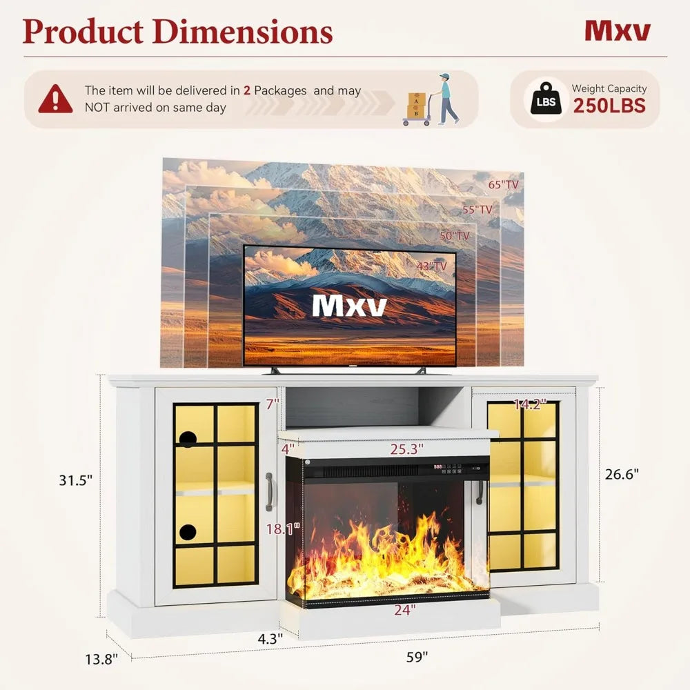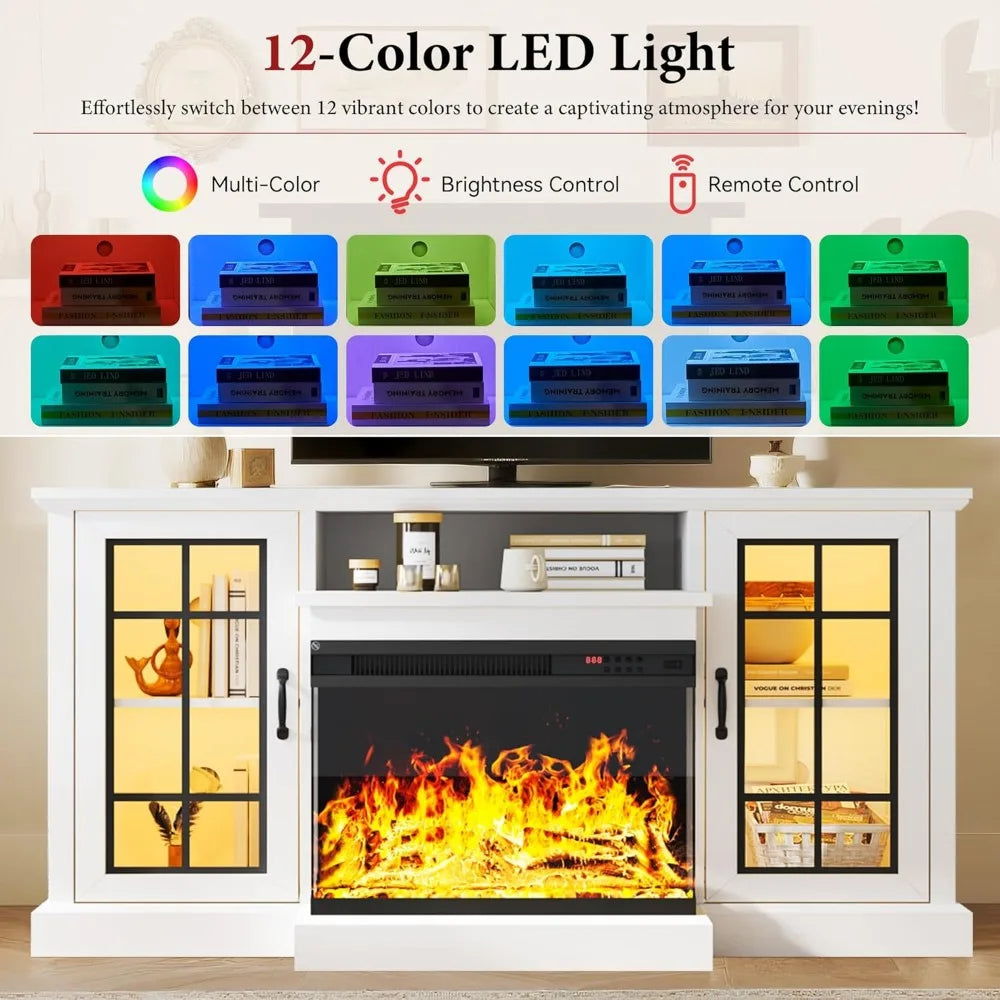 59'' Fireplace TV Stand, Farmhouse Entertainment Center with 3 Sided Glass TV Stand, Modern Media Console Table with Storage