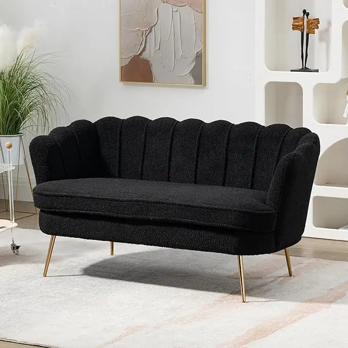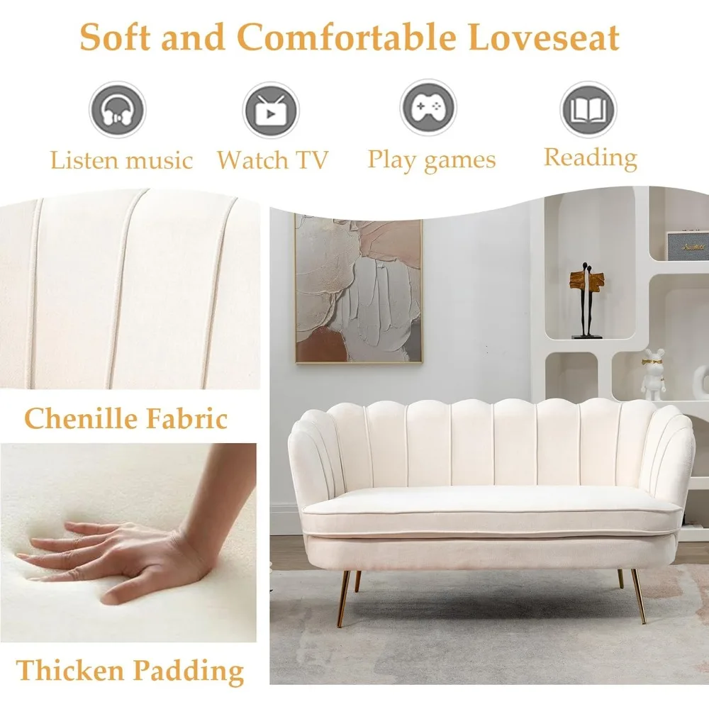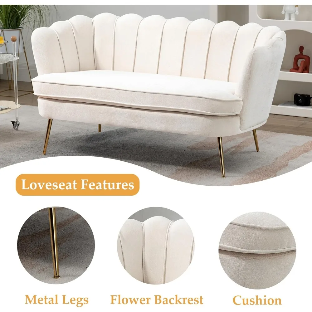 59” Small Modern Chenille Loveseat Sofa, 2-Seater Sofa with Gold Metal Legs, Small Couch with Flower Shaped Back for Living Room