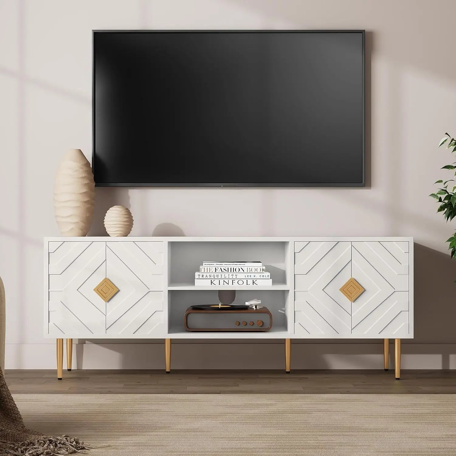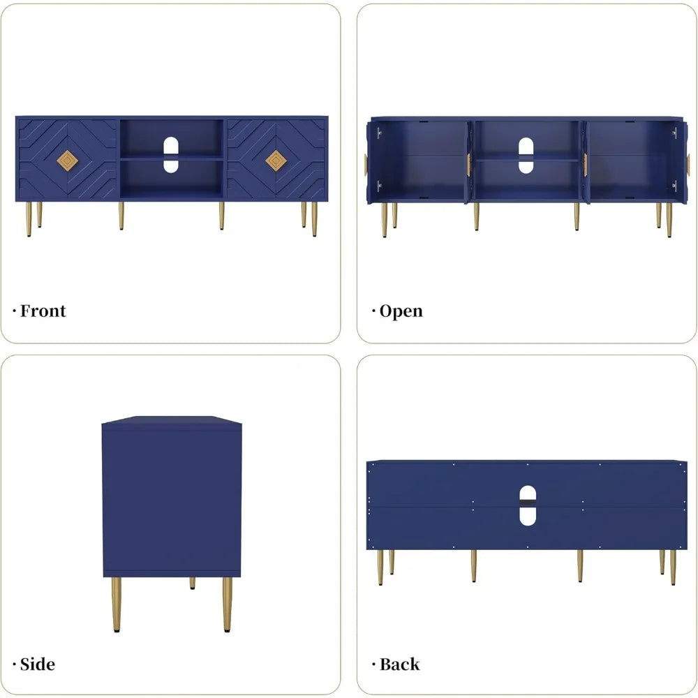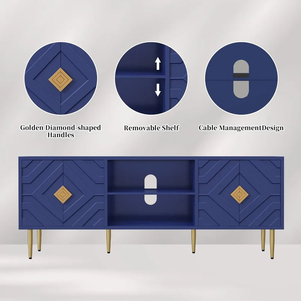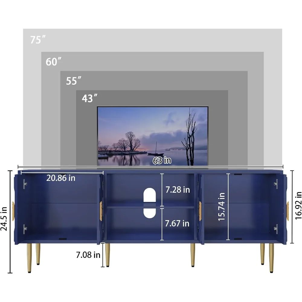 63''Modern TV Stand for 65/70/75 inch TV, Entertainment Center with Storage Cabinet, Mid Century Blue TV Stand,Embossed Patt