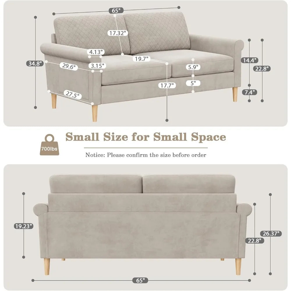 - Versatile and Space-Saving: 2-Seat Loveseat (65" W x 29.5" D x 34.8" H) embraces mid-century modern design. Ideal for small apartments and cozy corners, its compact size fits seamlessly into any area while maximizing seating. Enhance your space with this functional and stylish loveseat, designed to make a statement and optimize your living area.