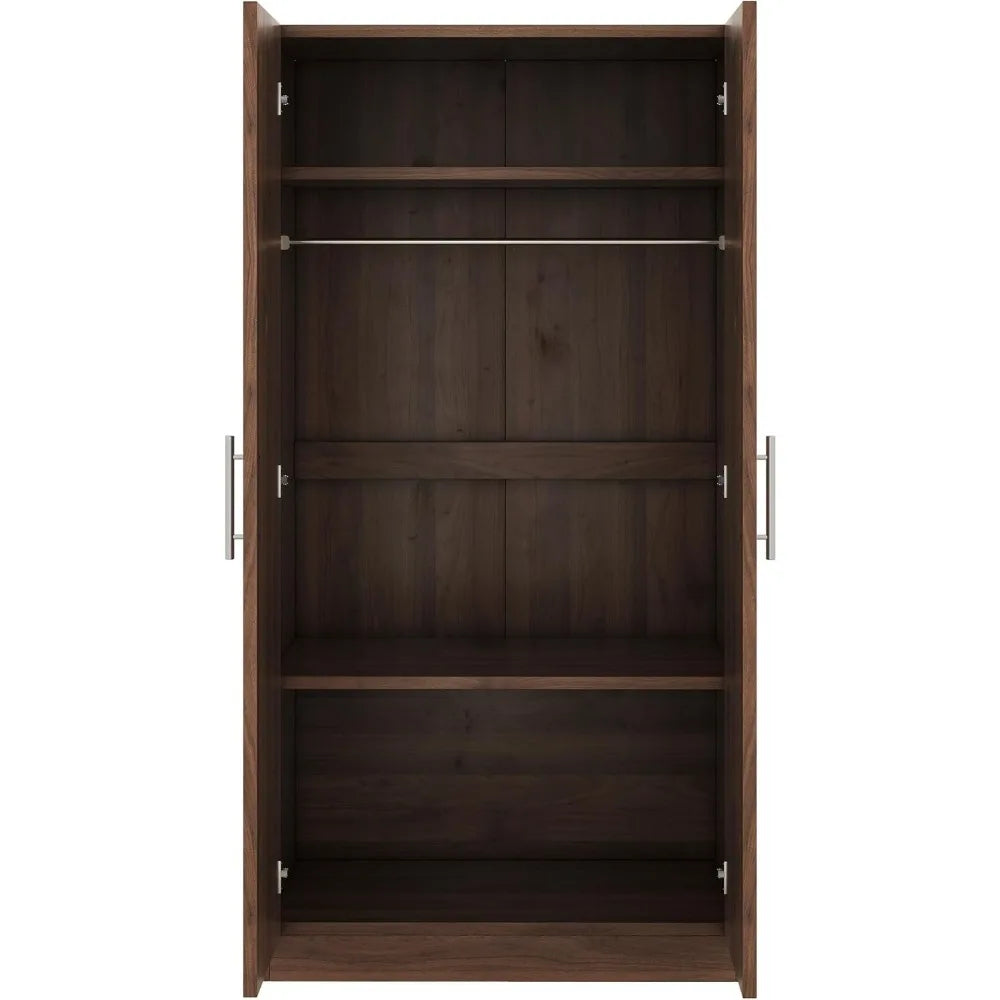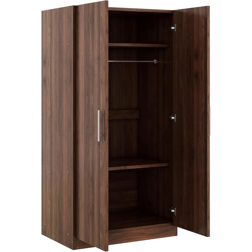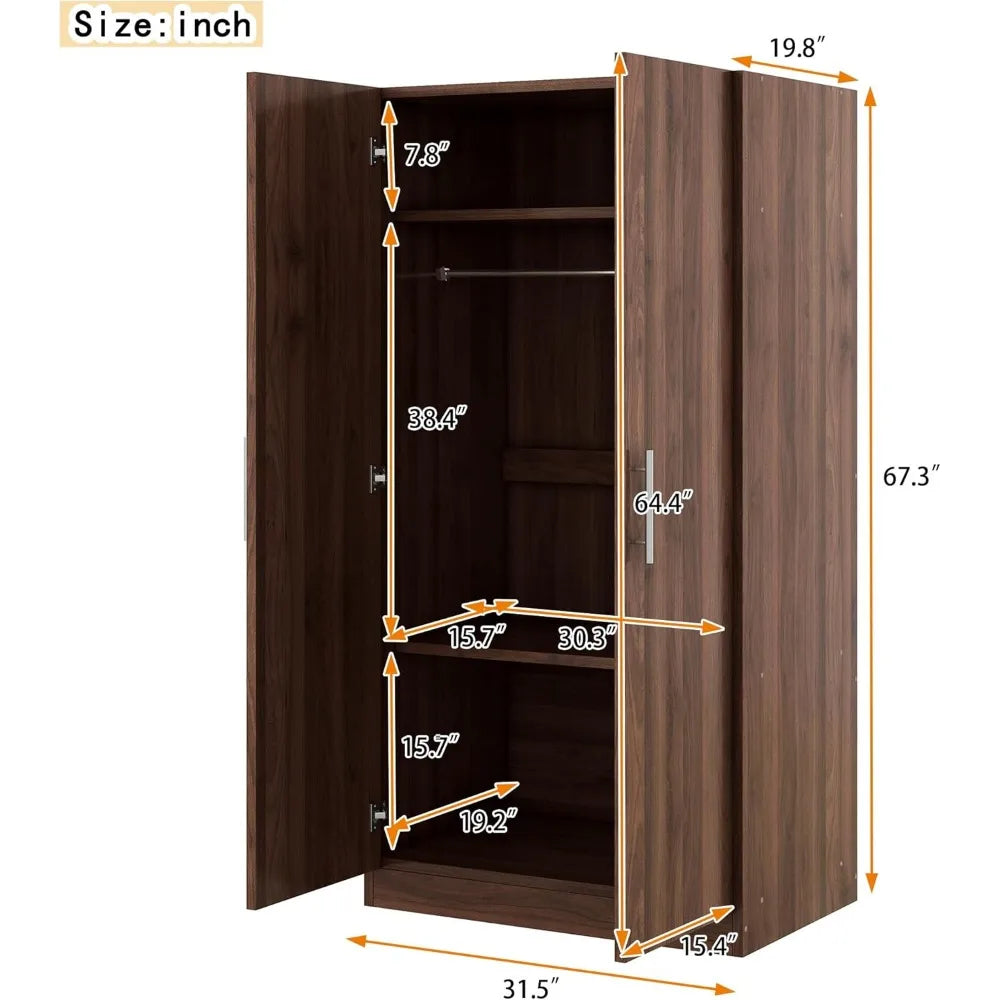 Armoire Wardrobe Closet with 2 Doors, 67.3" H Armoire with Shelves, Wooden Wardrobe Closet for Hanging Clothes, Bedroom Armoires