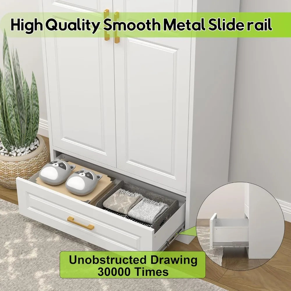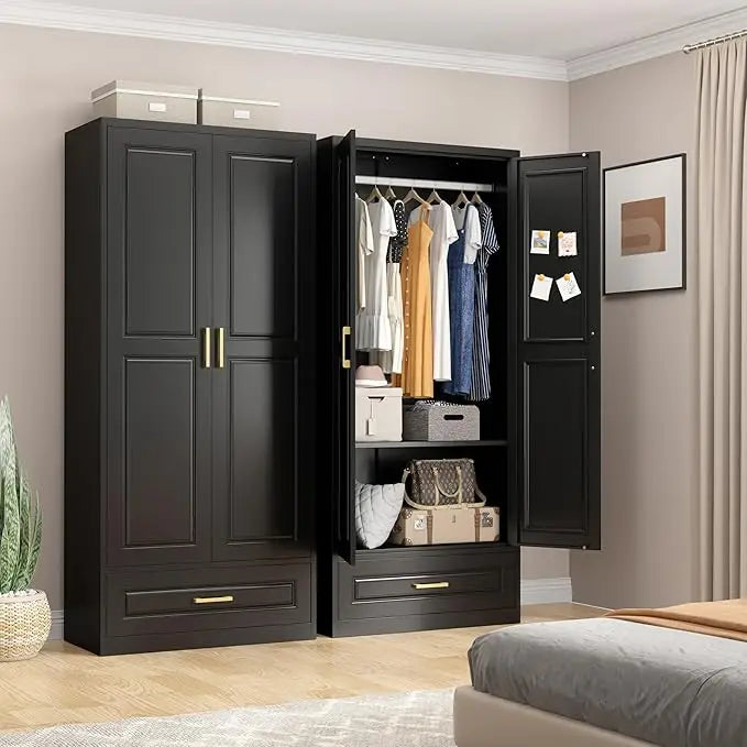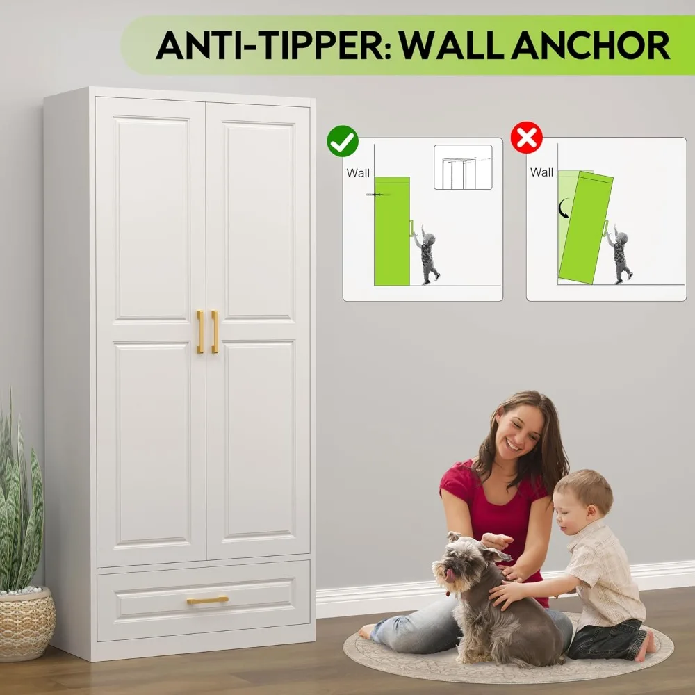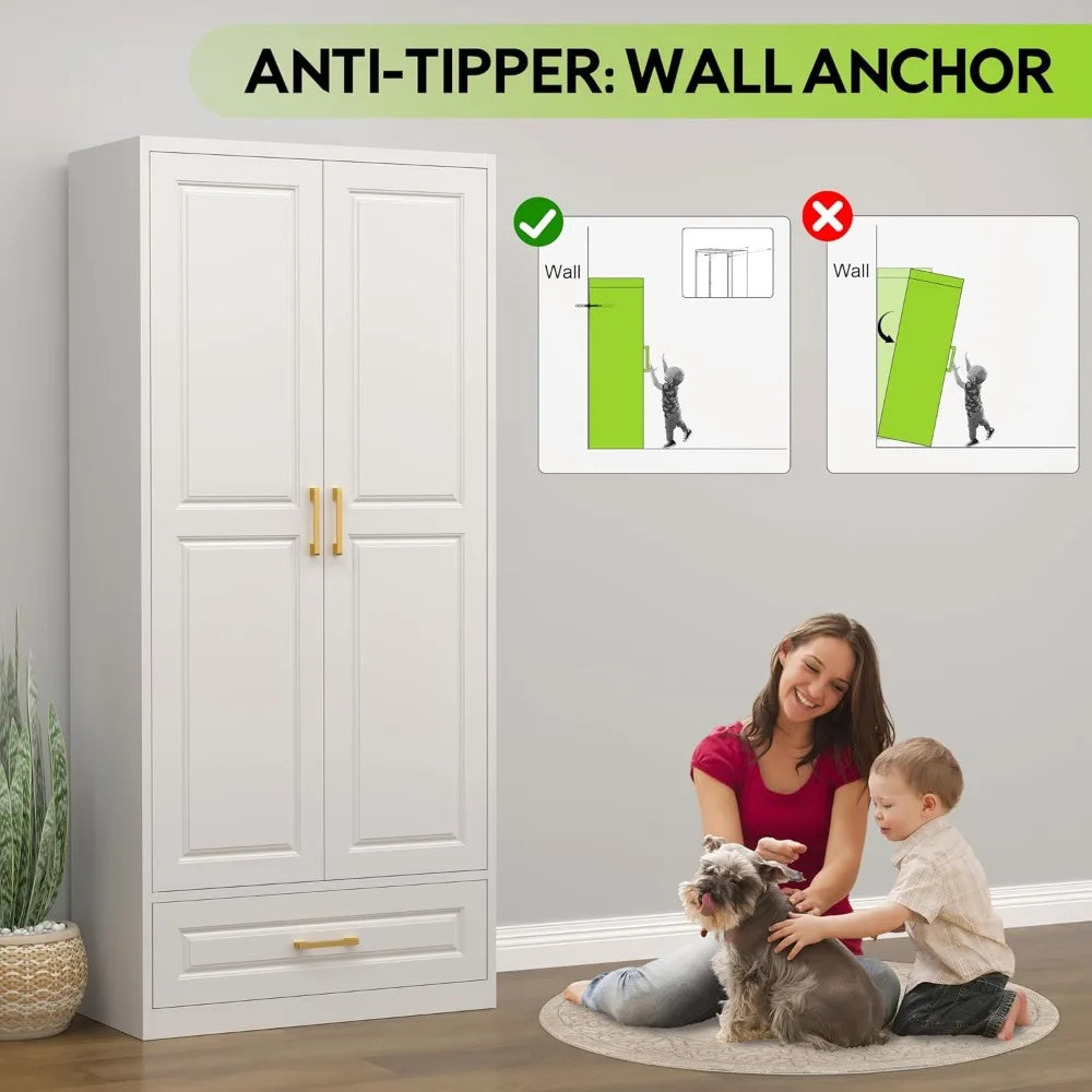 Armoire Wardrobe Closet with Doors, 71'' Wardrobe Cabinet with Hanging Rod, Metal Closet with 2 Adjustable Shelves for Bedroom S