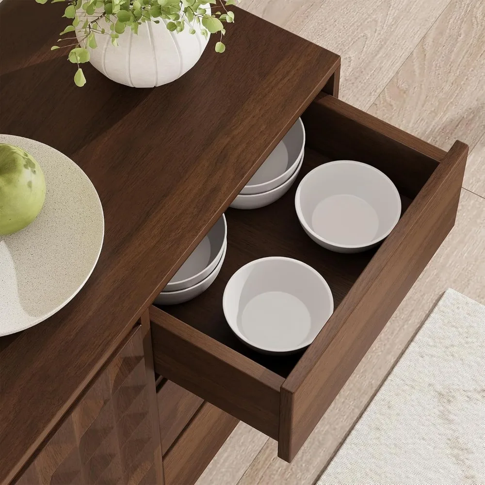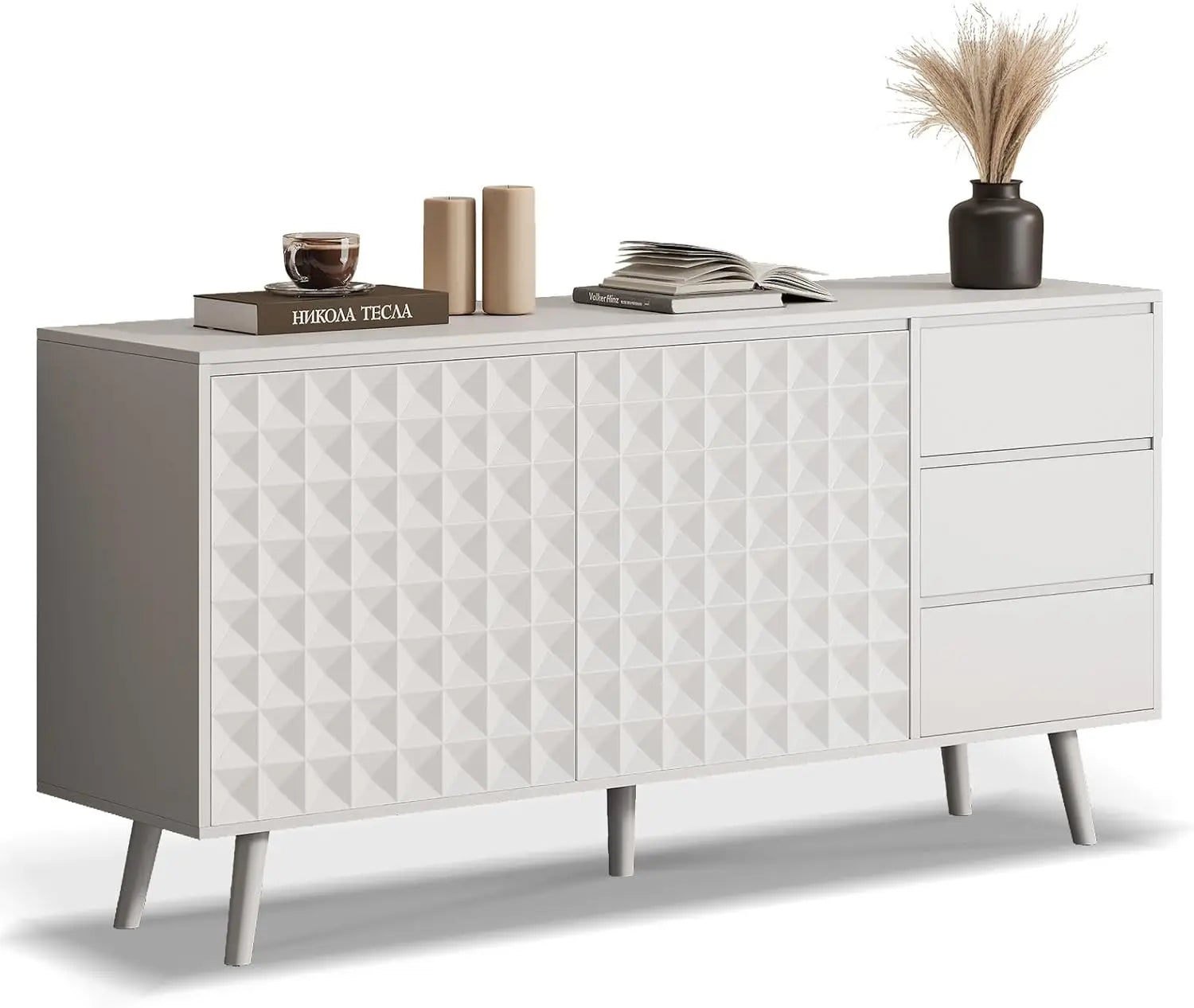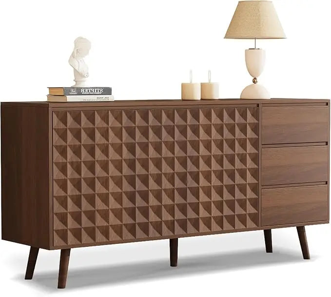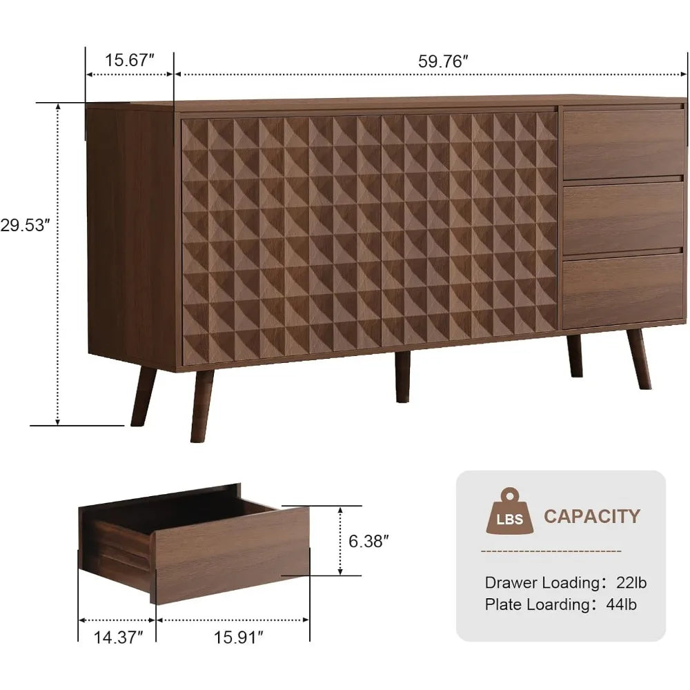 Buffet Cabinet - Large Buffet Storage, Kitchen Sideboard Storage with 2 Doors and 3 Drawers, Diamond Shaped Console Table, 59.76