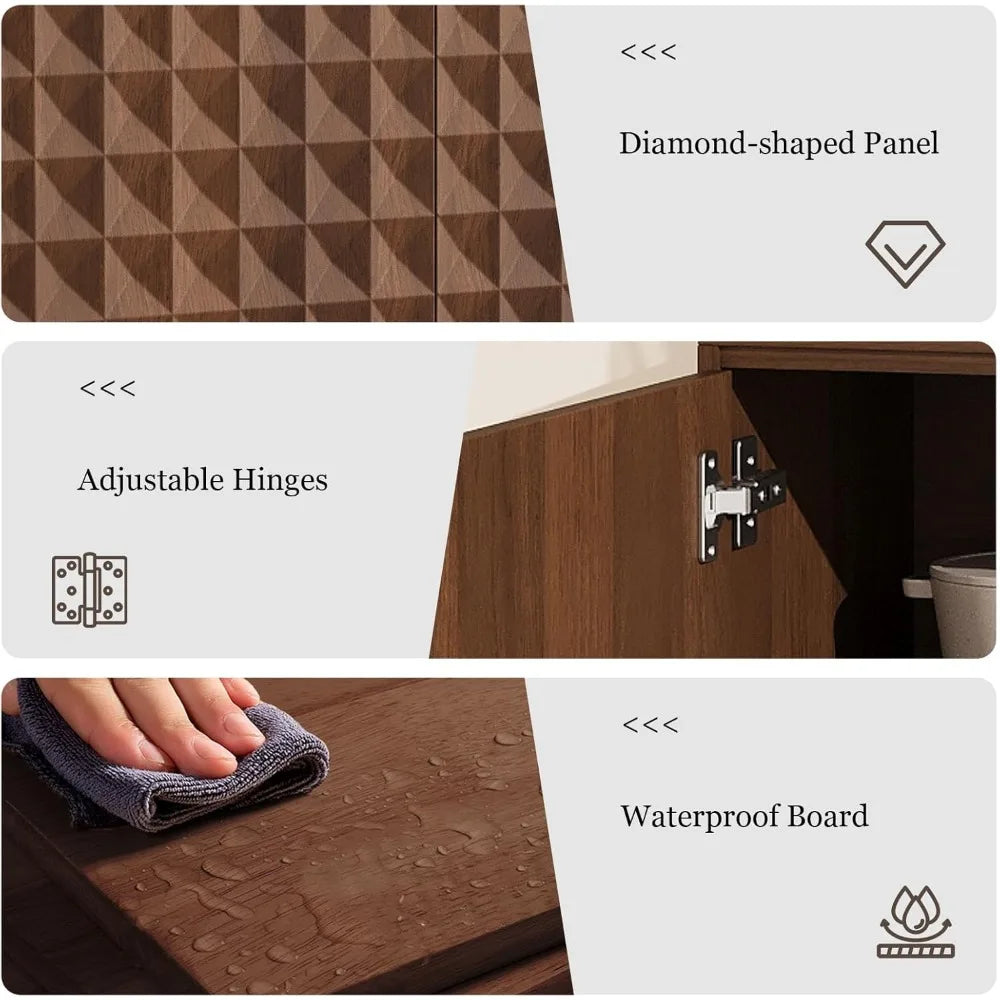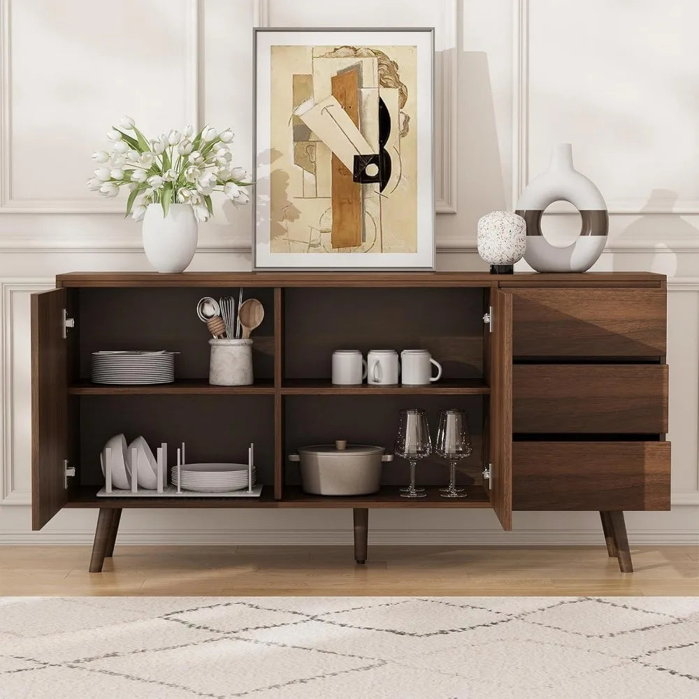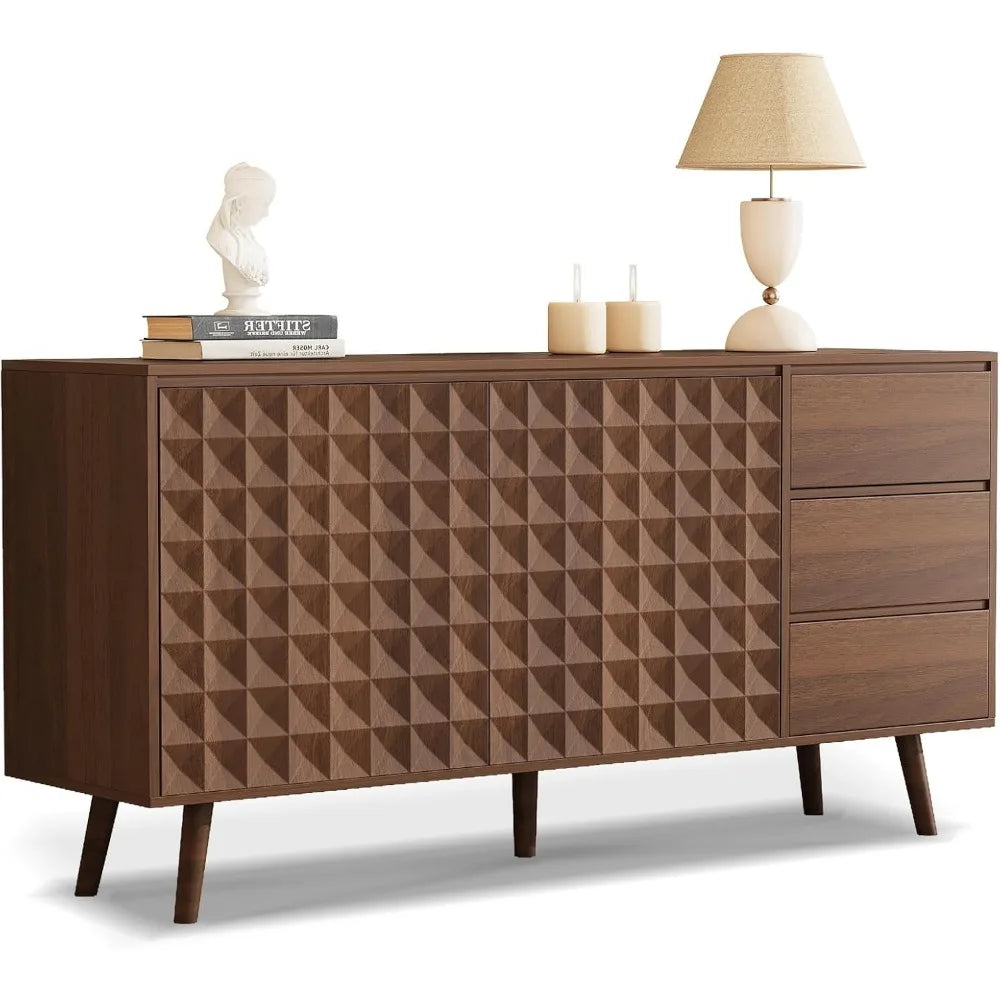 Buffet Cabinet - Large Buffet Storage, Kitchen Sideboard Storage with 2 Doors and 3 Drawers, Diamond Shaped Console Table, 59.76