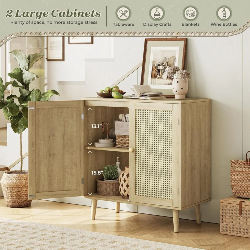 - 【Big Storage as You Want】With 2 rattan doors, inner shelf, and a spacious desktop, you can store your exquisite, dessert, display items, kitchen dinnerware... all in this large sideboard and buffet cabinet