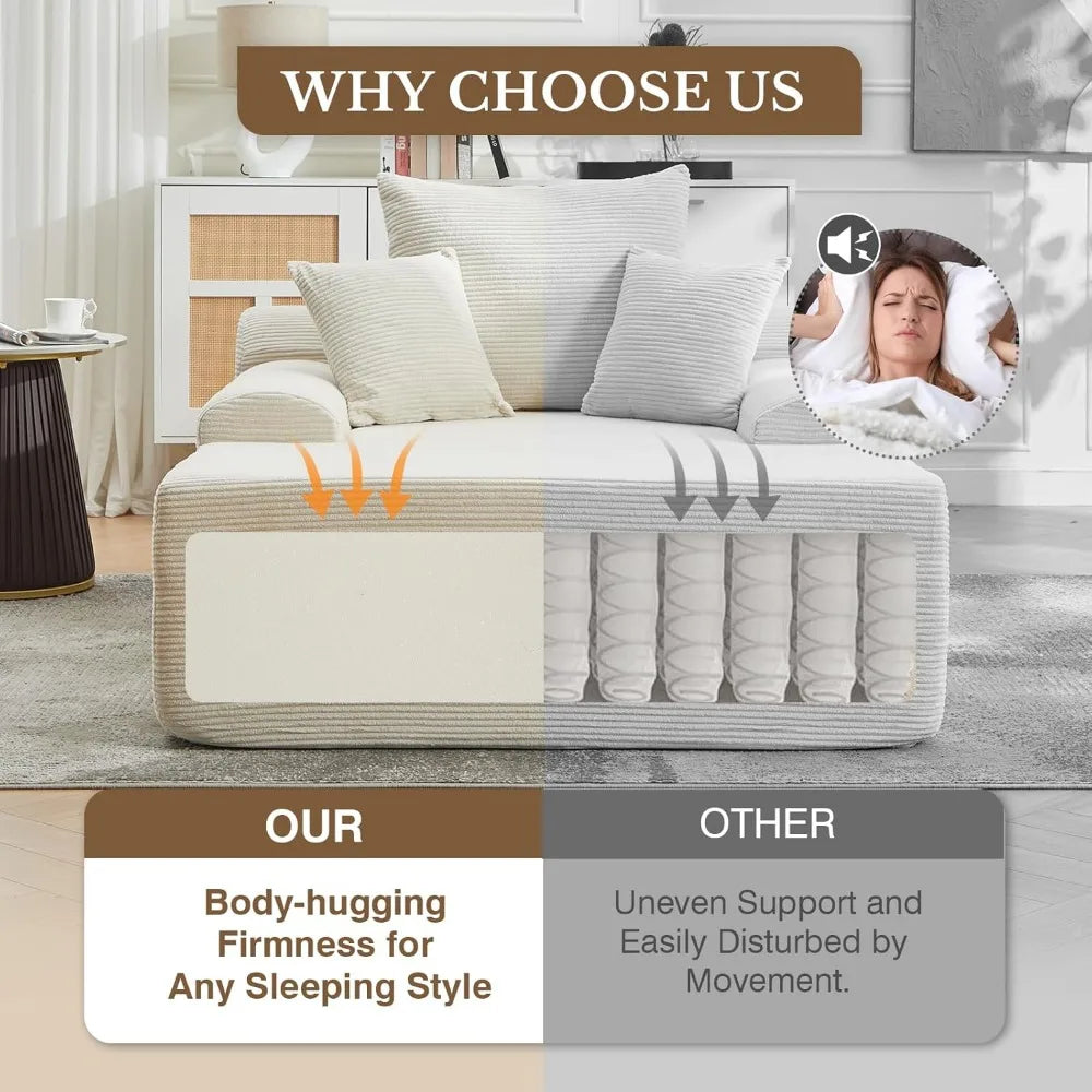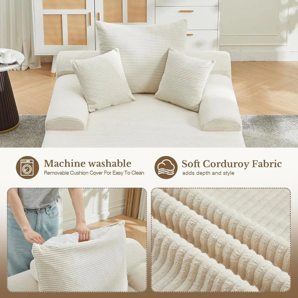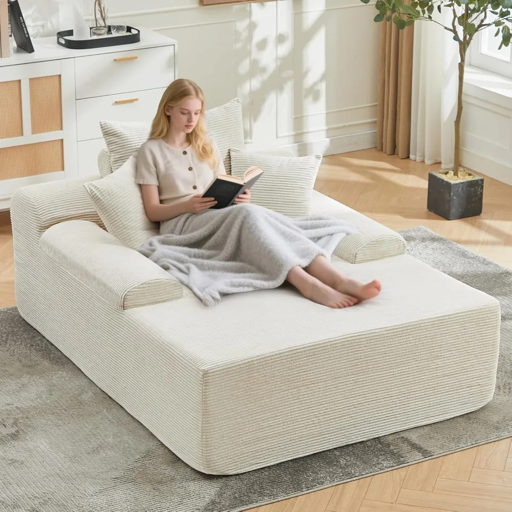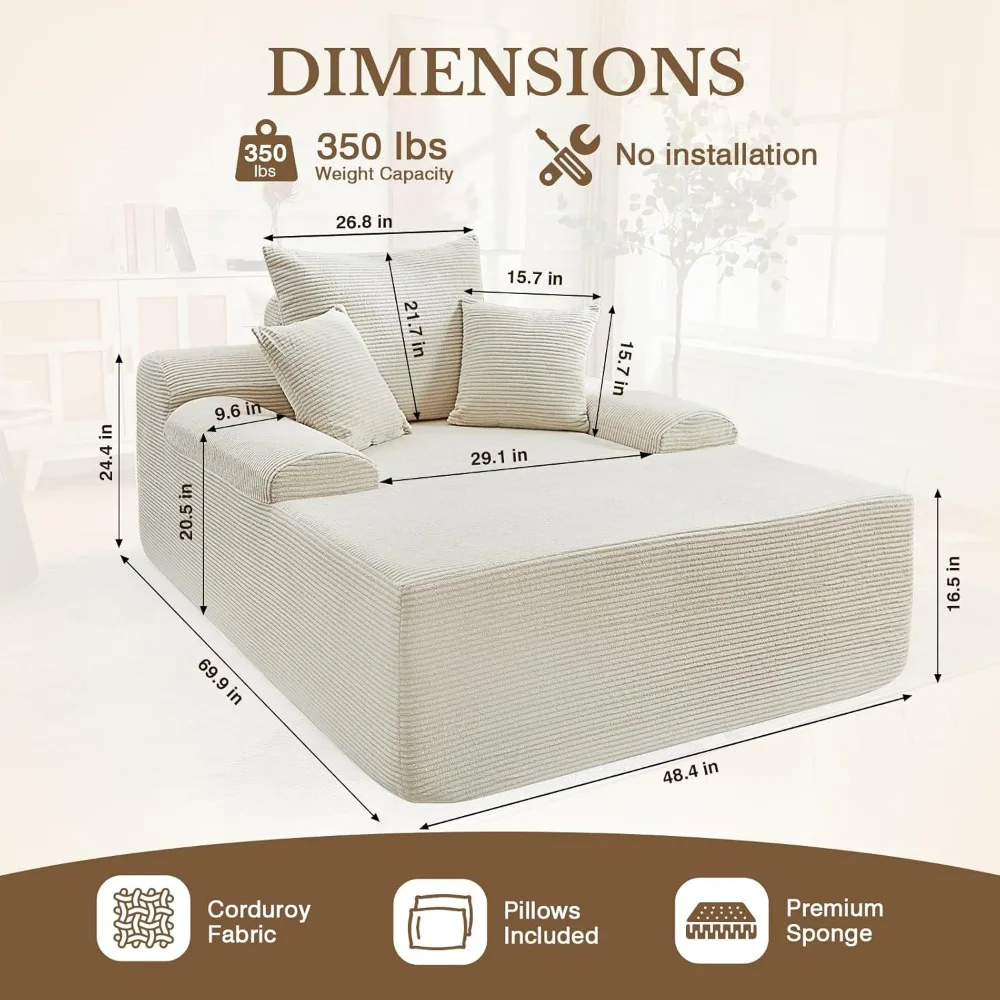 Chaise Lounge Chair Indoor, Corduroy Upholstered Boneless Sofa Bed Couch with Armrests and 3 Pillows, Cloud Sleeper Sofa Chair C