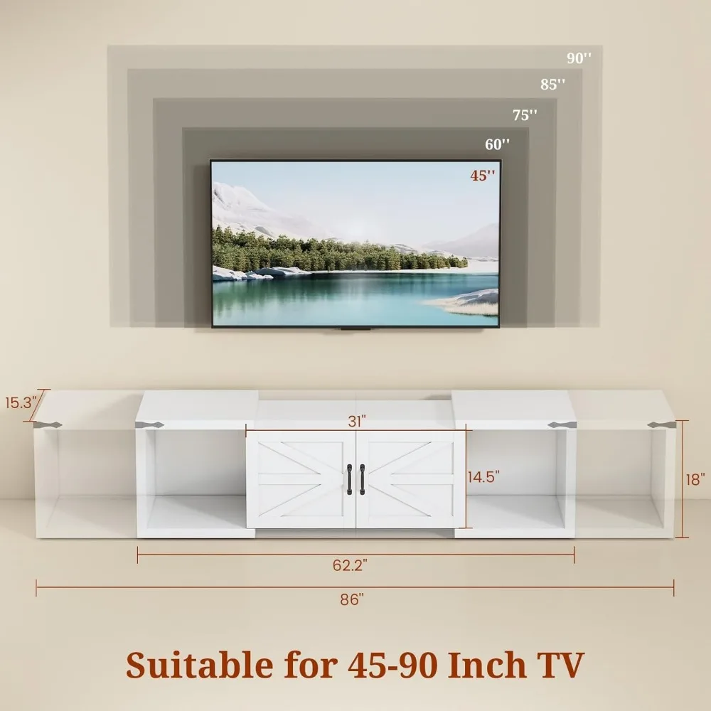 Farmhouse 85 Inch TV Stand for 75+ Inch TV for Living Room, Deformable Entertainment Center with Storage, Television Stand for 6