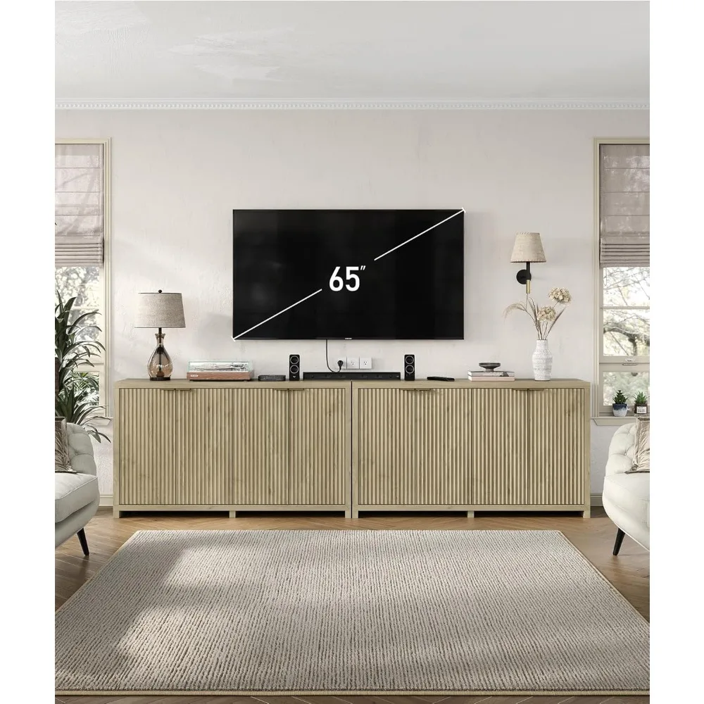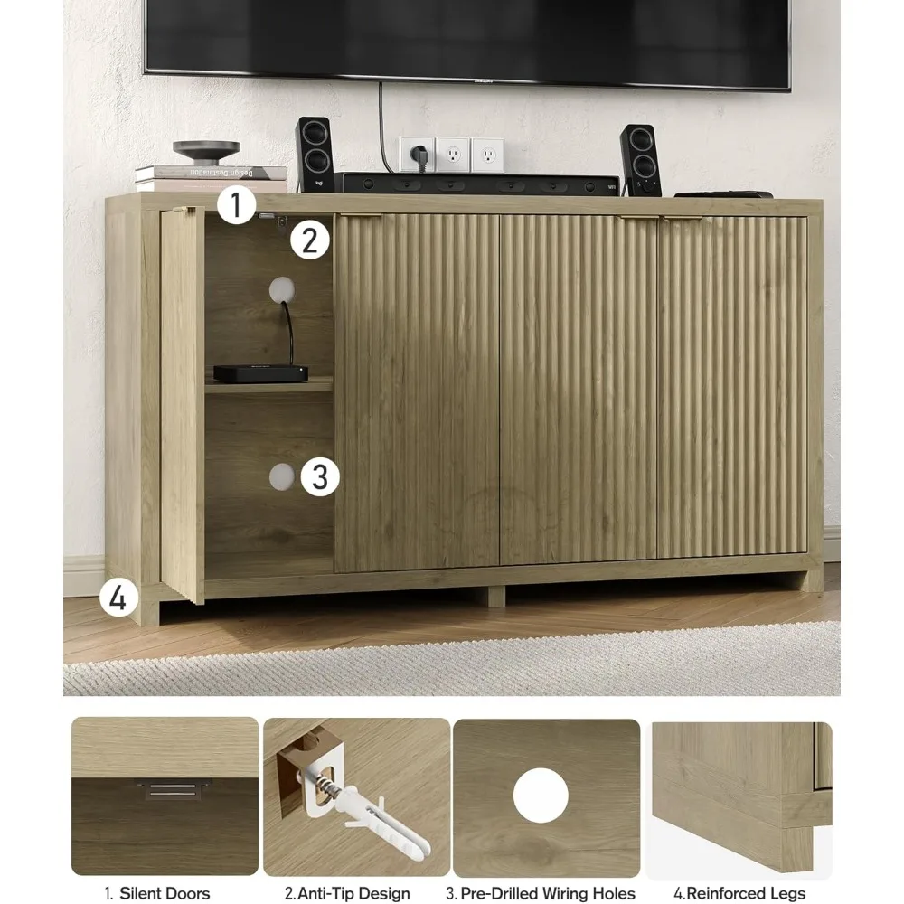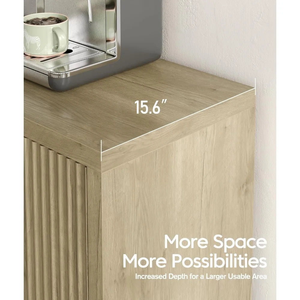 - Fluted Wave Doors with Quiet Closing:Modern fluted design with 4 soft-close doors reduces noise while adding texture. A stylish and functional buffet cabinet with storage