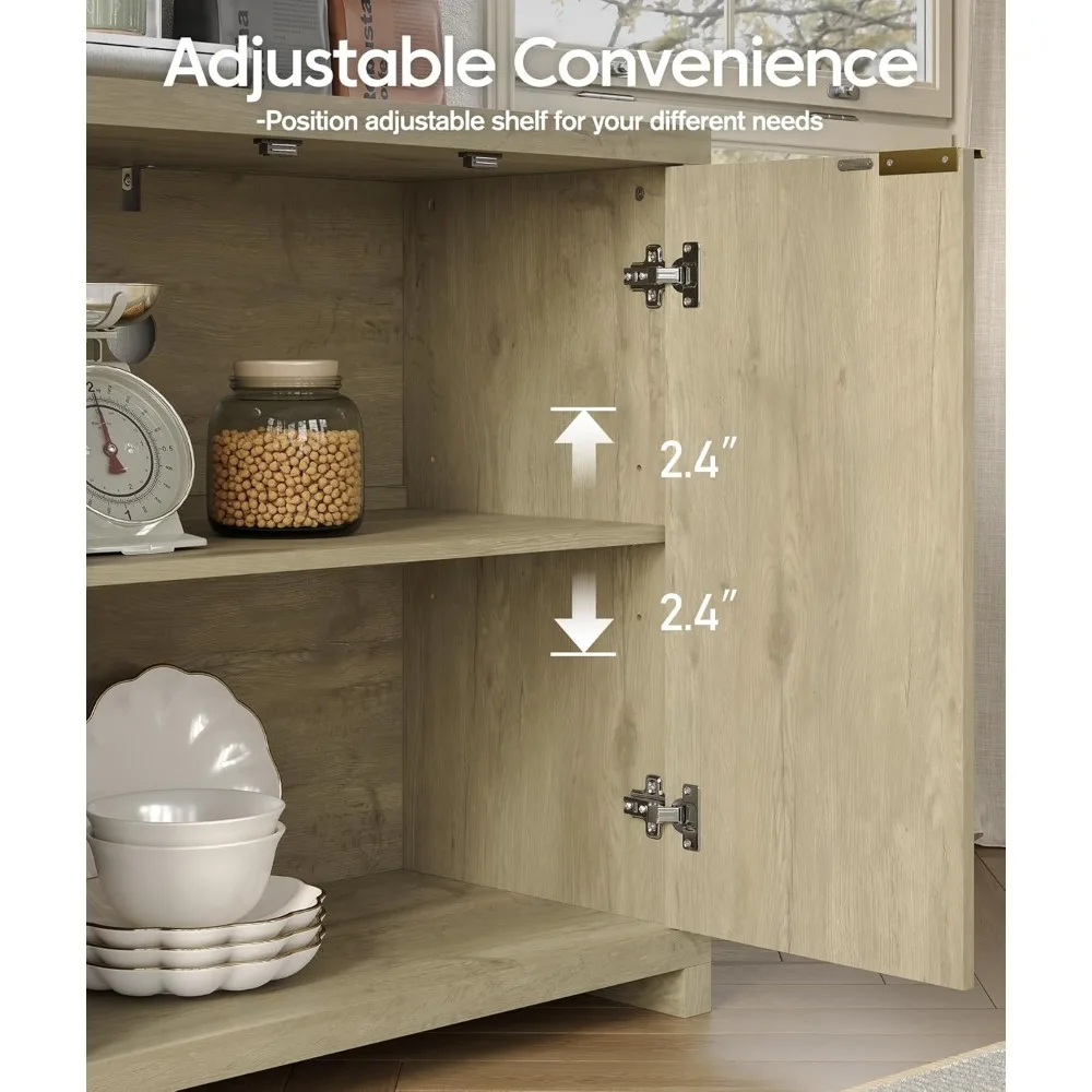 - Adjustable Shelves for Flexible Storage: Each compartment has an adjustable shelf to fit tall or wide items, making your buffet cabinet with storage versatile and customizable