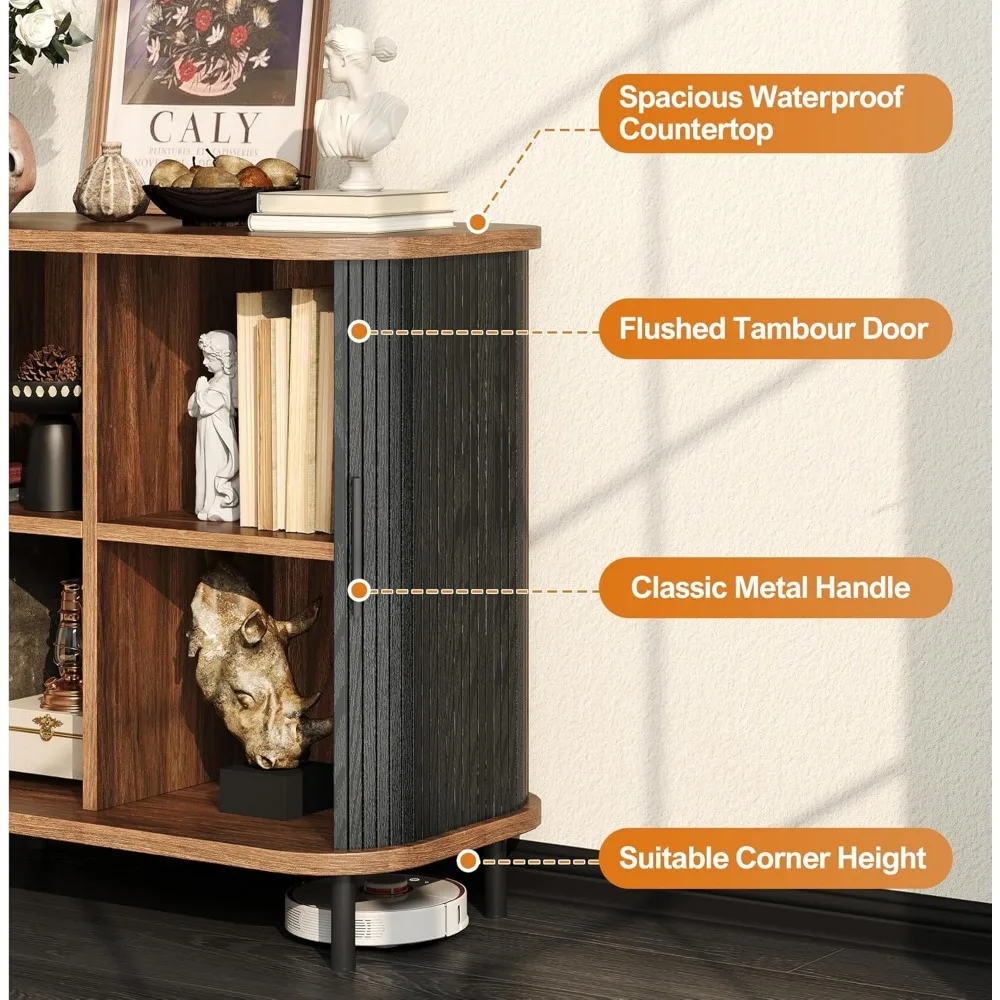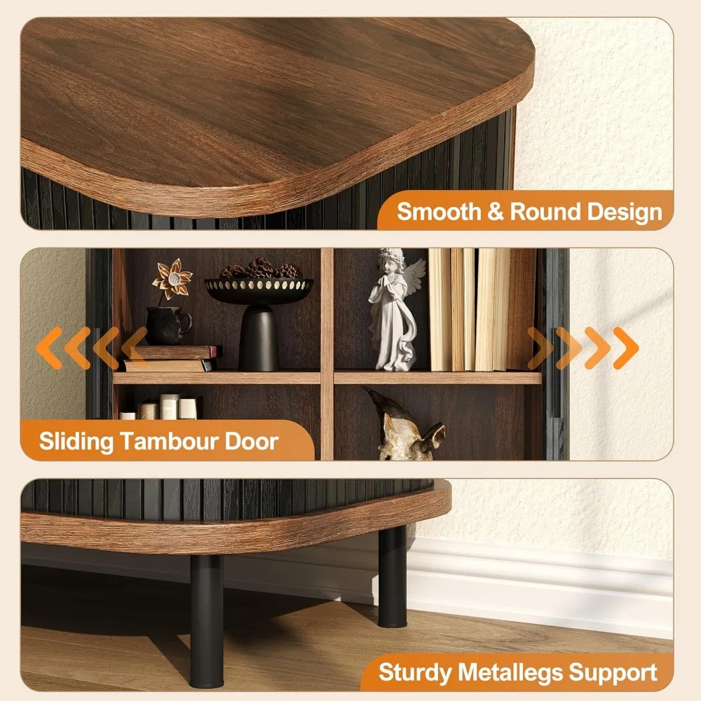 Fluted Sideboard Buffet Cabinet, 31''W Storage Cabinet with Sliding Door, Coffee Bar Buffet Cabinet for Living Room, Kitchen, En