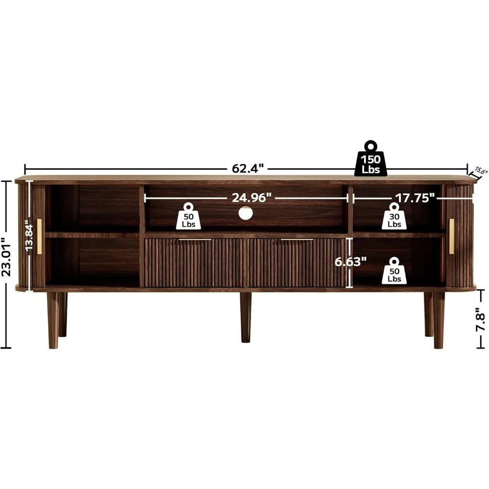 Fluted TV Stand, 62.4 Inch Mid Century Modern Media Console Table with Sliding Tambour Door Farmhouse Sideboard Buffet Cabinet F