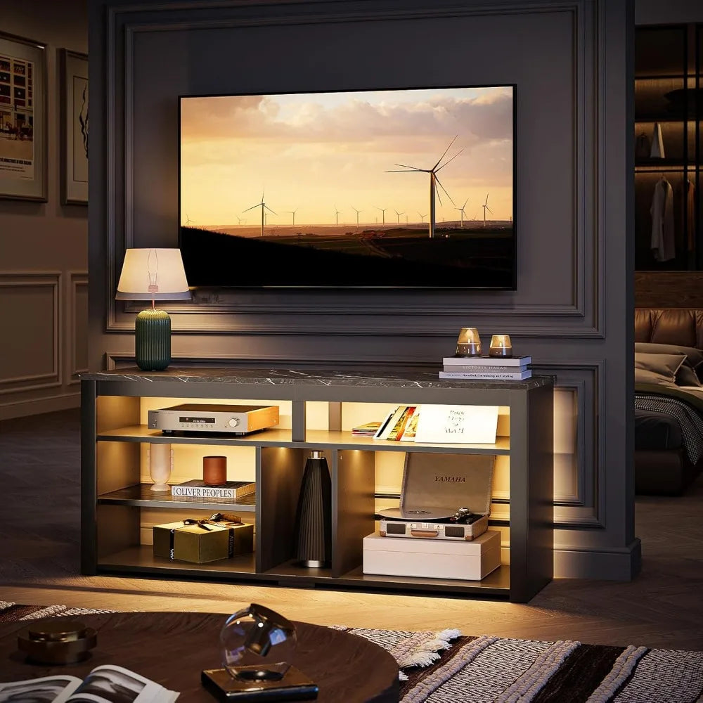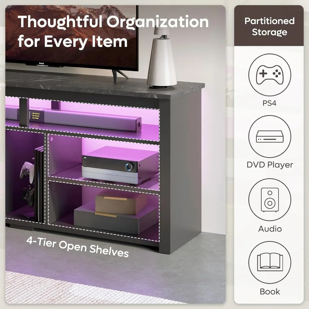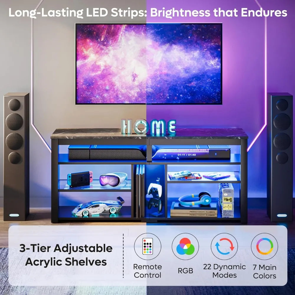 LED Tall Entertainment Center, 55/60/65 inch TV Stand with Storage for PS5 Xbox, Adjustable Shelf Media Console for Livi