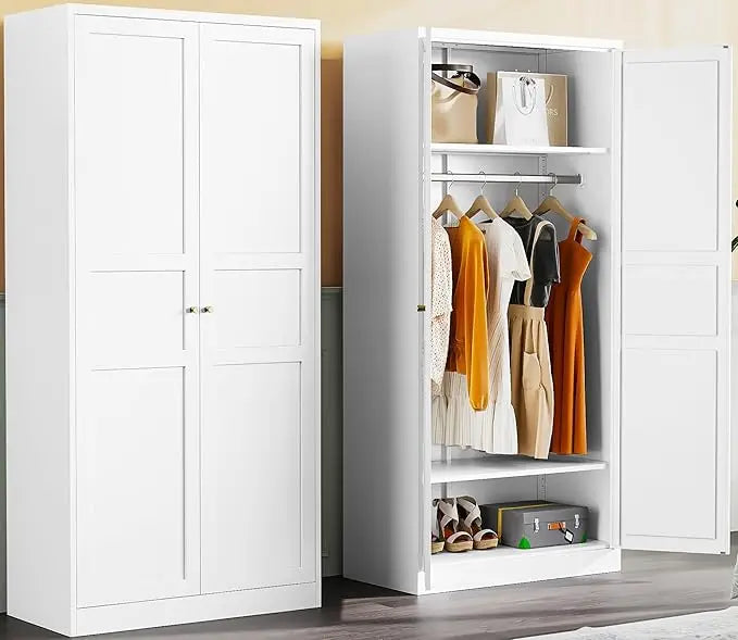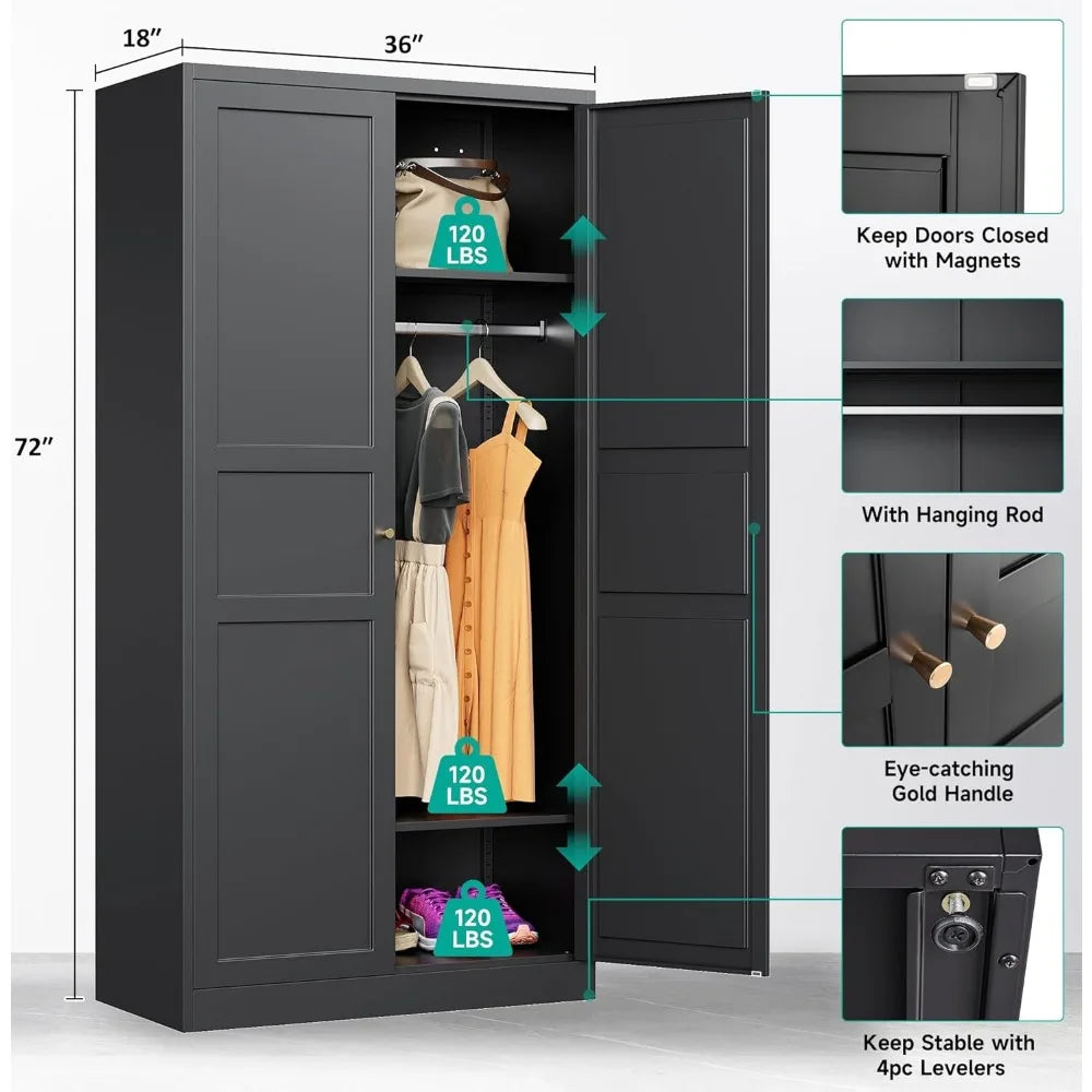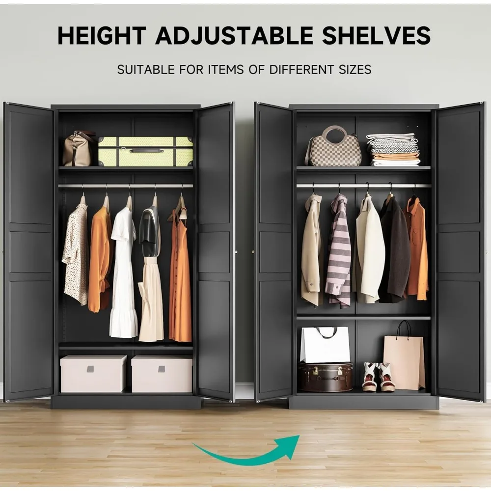 Metal Wardrobe Cabinet with Hanging Rod,Black Armoire Wardrobe Closet,Metal Clothing Storage Cabinet with Adjustable She