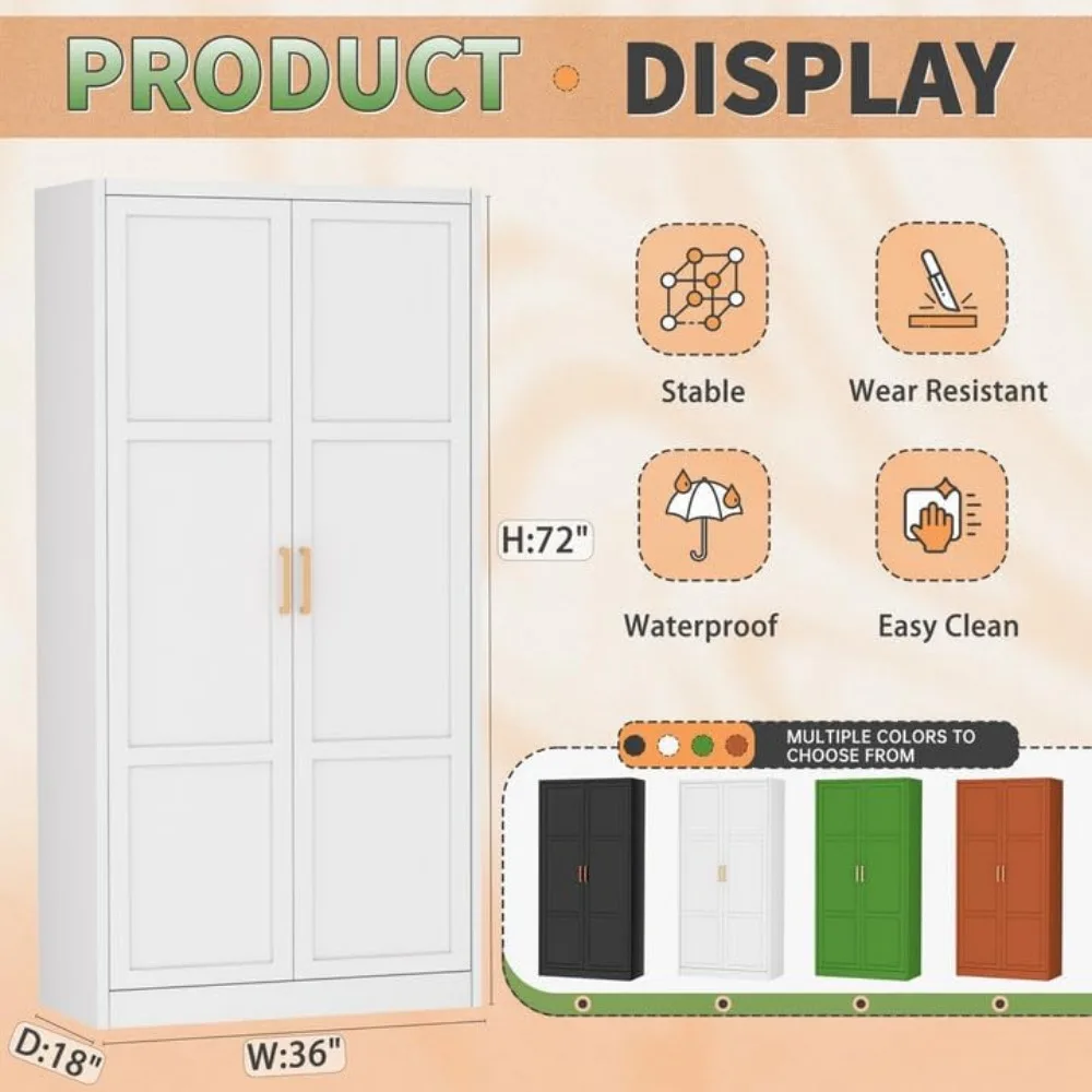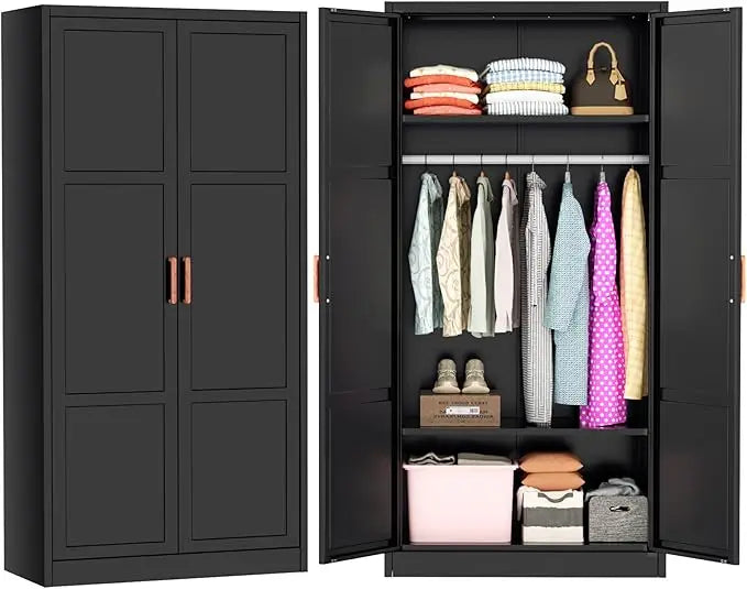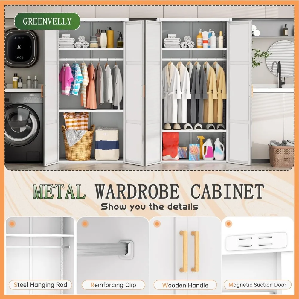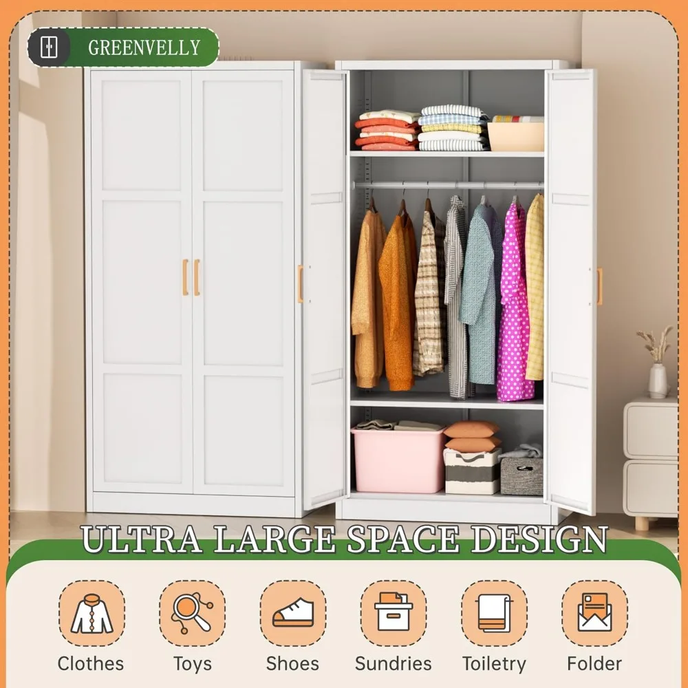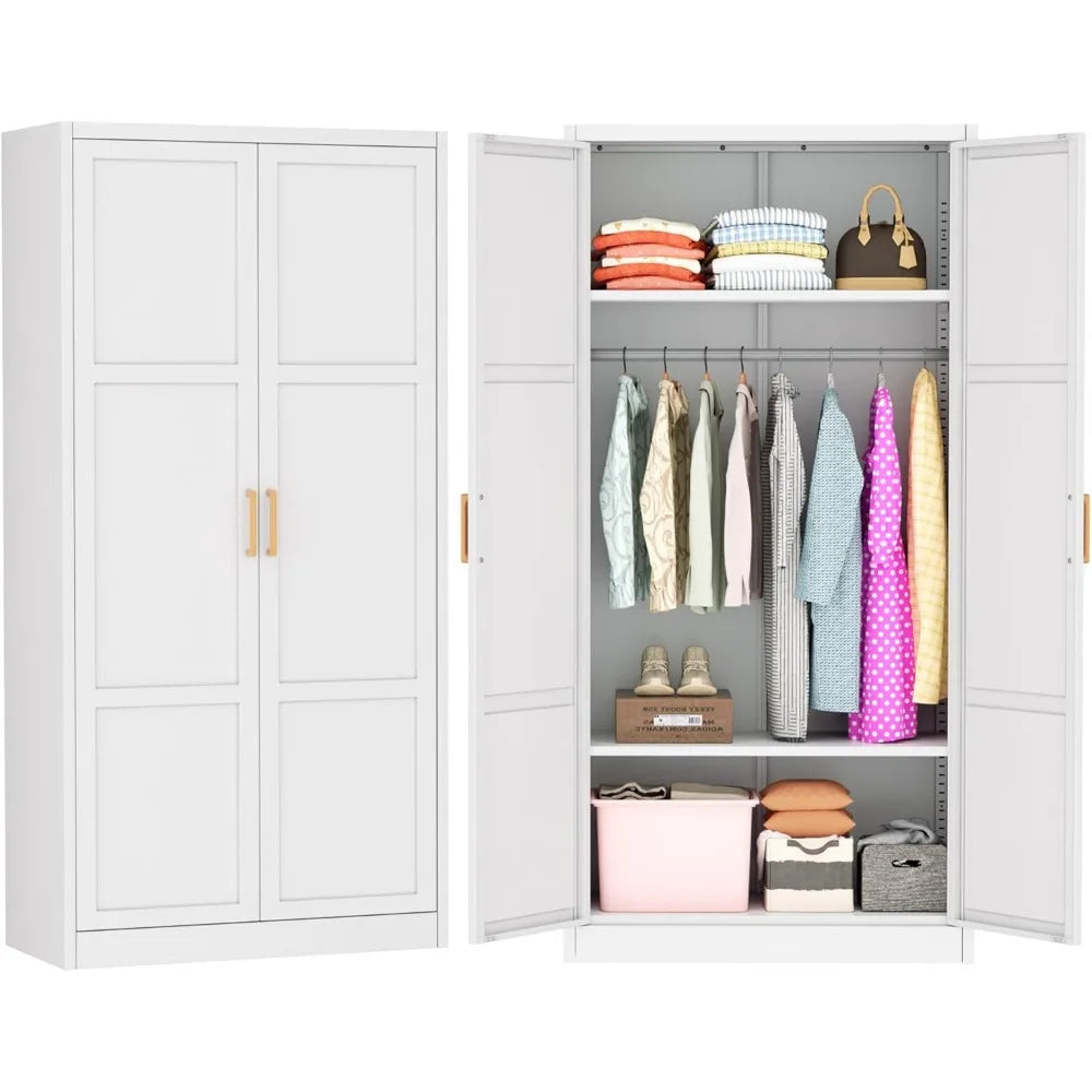 Metal Wardrobe Closet with Doors and Shelves,72" Armoire Wardrobe Closet for Hanging Clothes for Office, Home, School