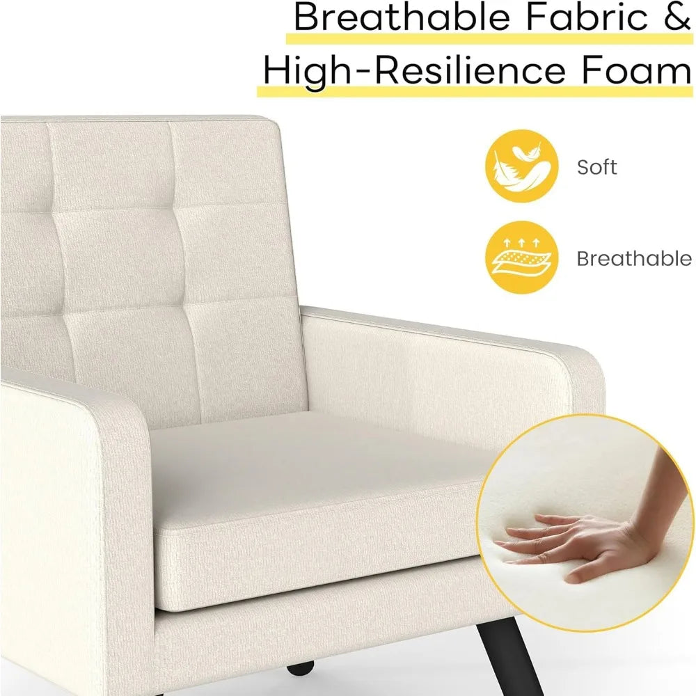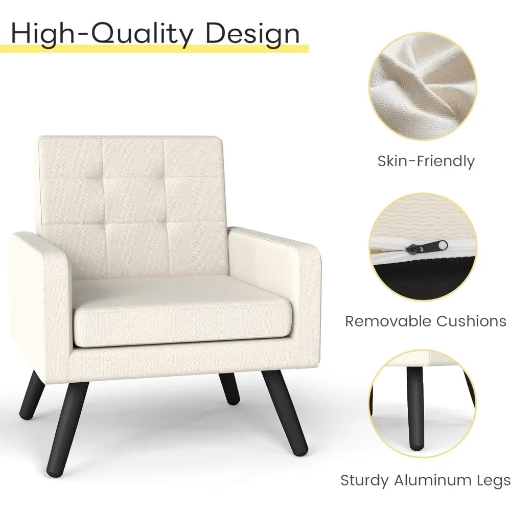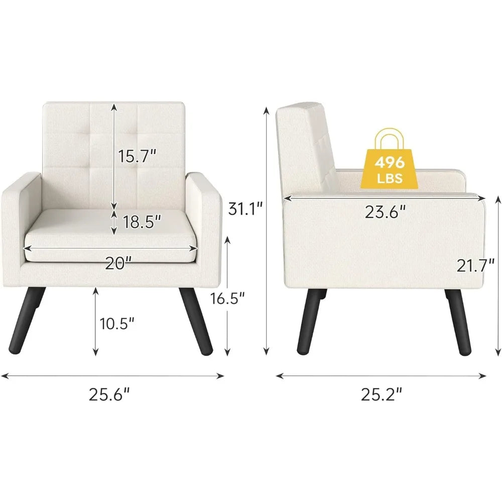 Mid-Century Modern Accent Chair for Living Room, 496 Lb. Weight Capacity, Dual Armrests, Comfy Extra Large Seat, Timeless