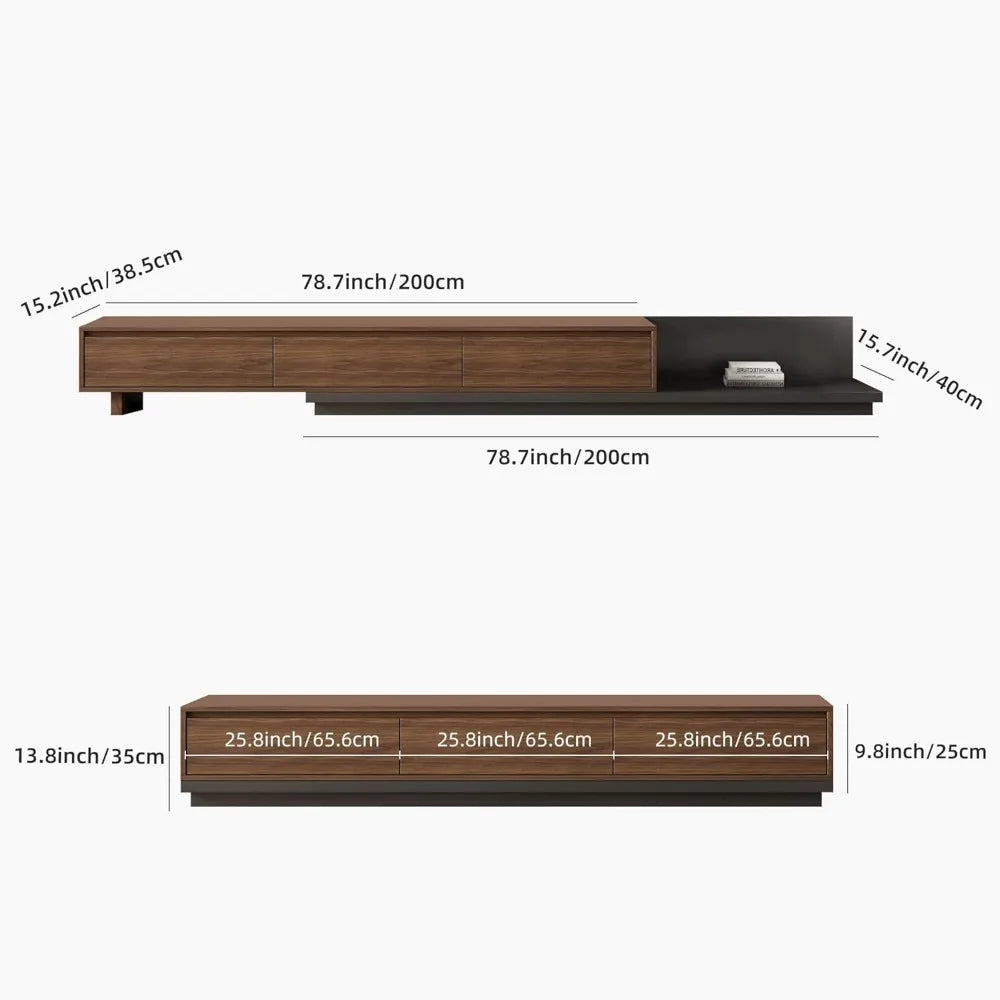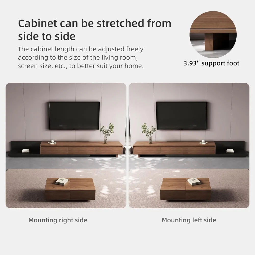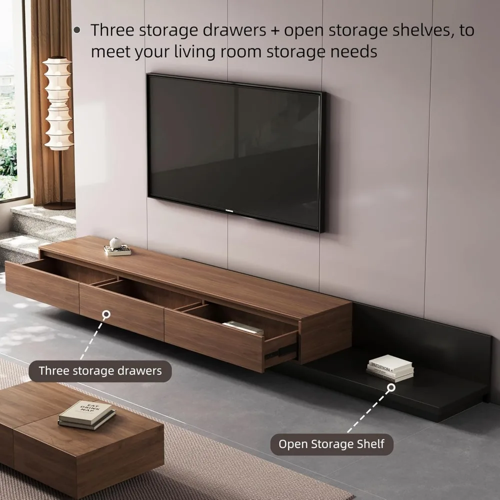 Mid-Century Modern Expandable TV Stand with 3 Drawers – Adjustable Entertainment Center for Living Room & Bedroom (79" to 130"),