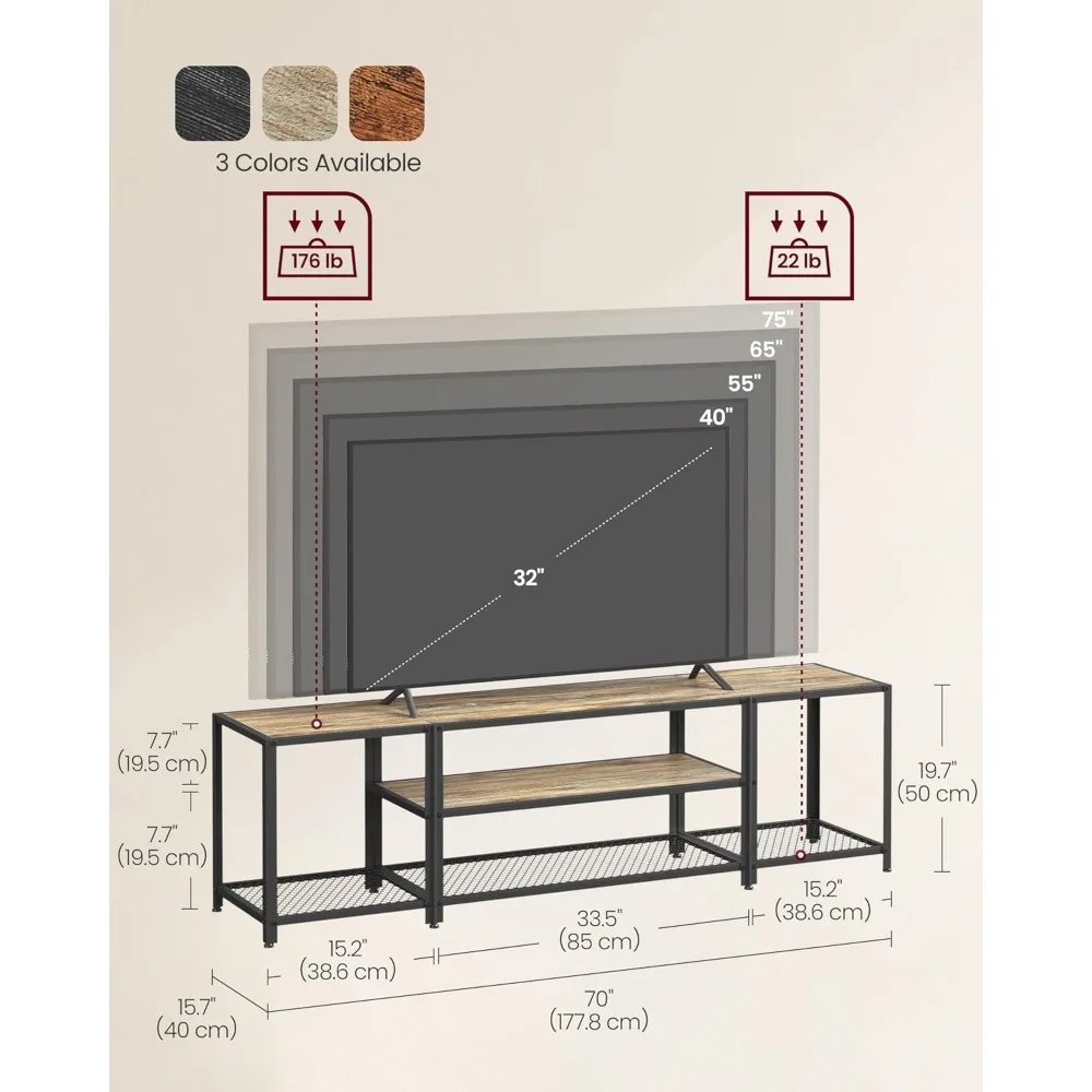 Modern TV Stand for TVs up to 75 Inches, 3-Tier Entertainment Center, Industrial TV Console Table with Open Storage Shel