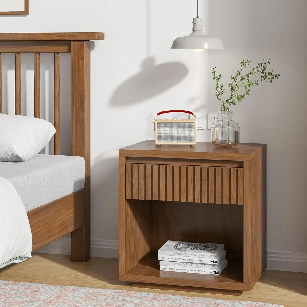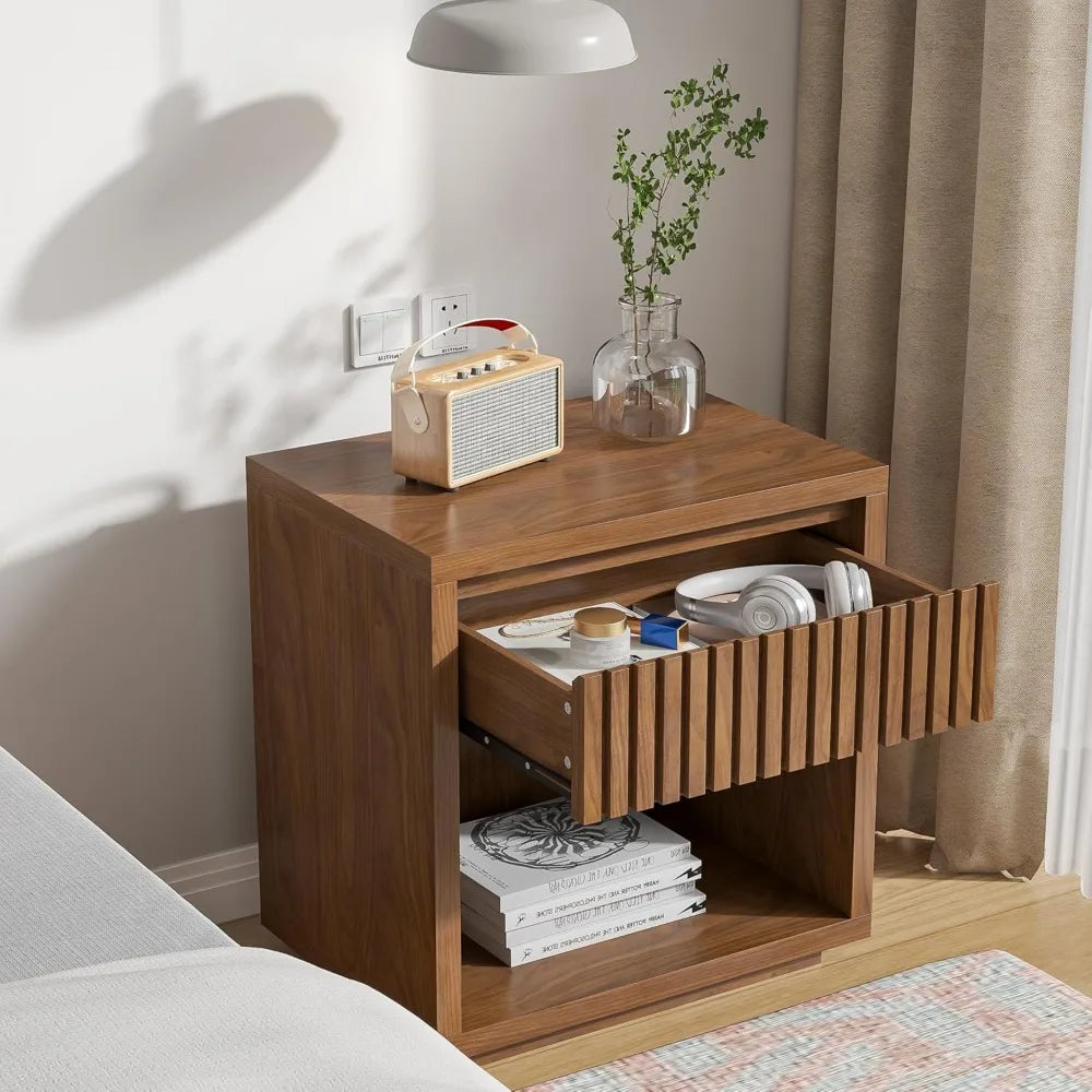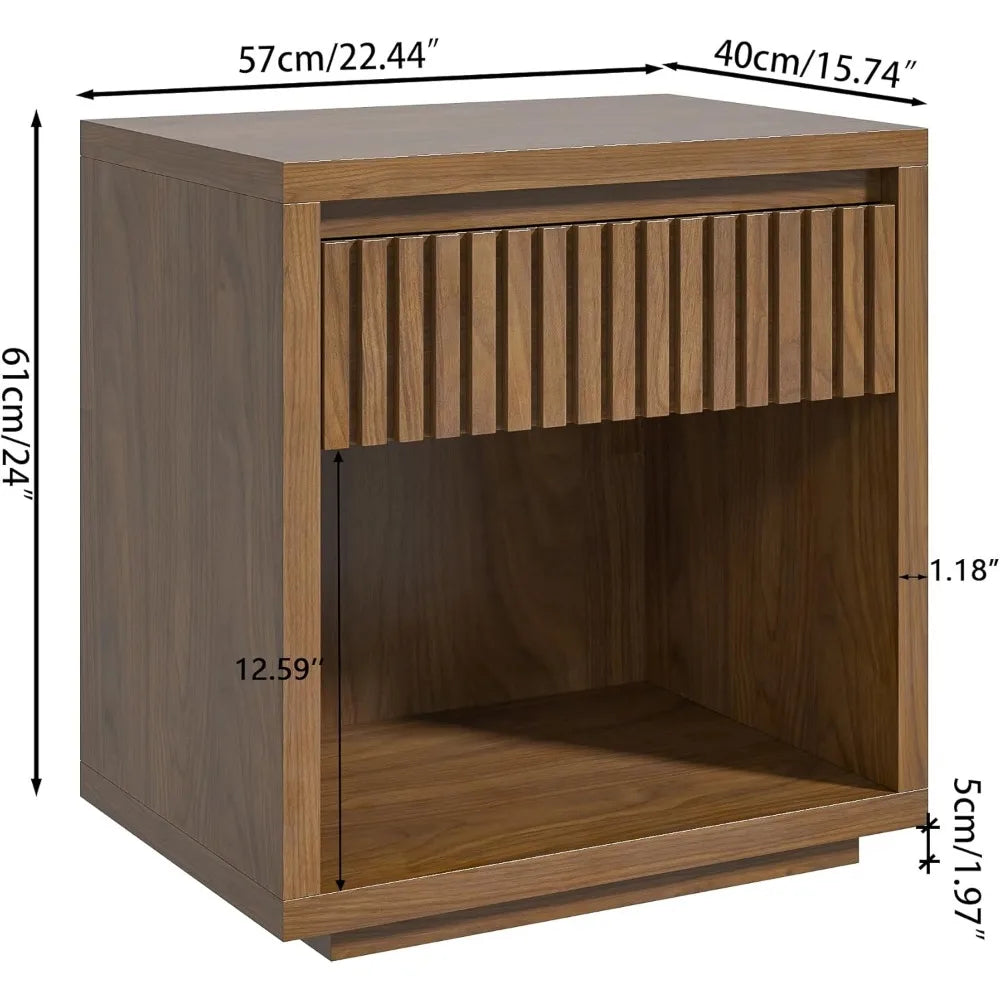 Night Stand Nightstand with Drawer Storage Fluted Bed Side End Table 22.44in, Mid Century Bedside Table for Living Room, Bedroom