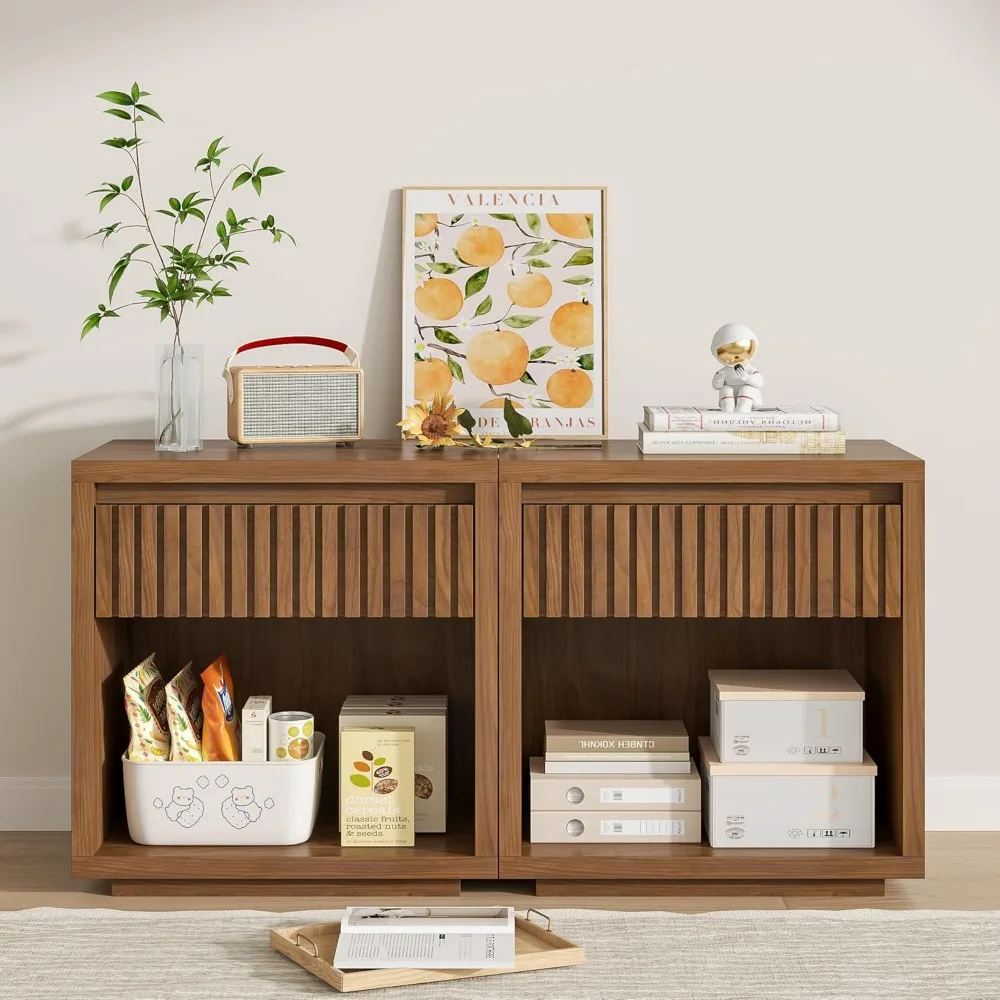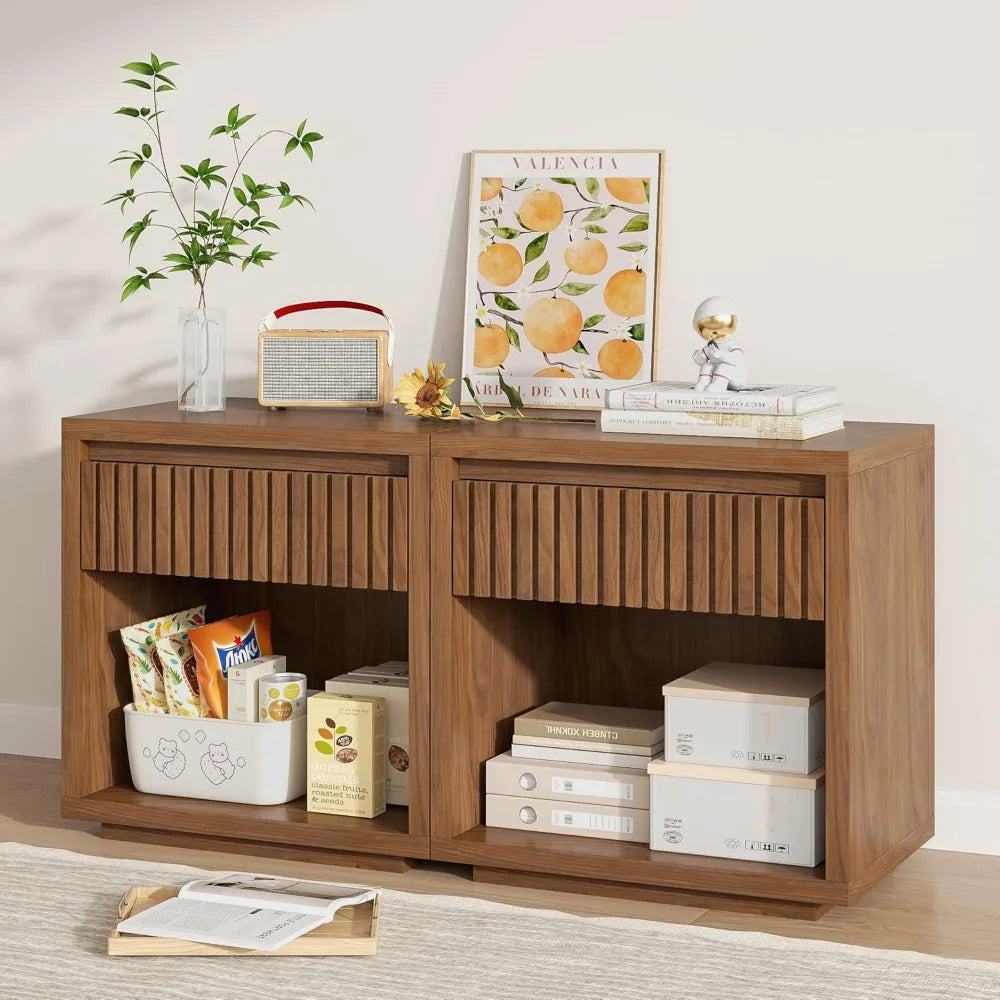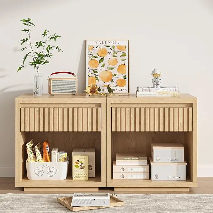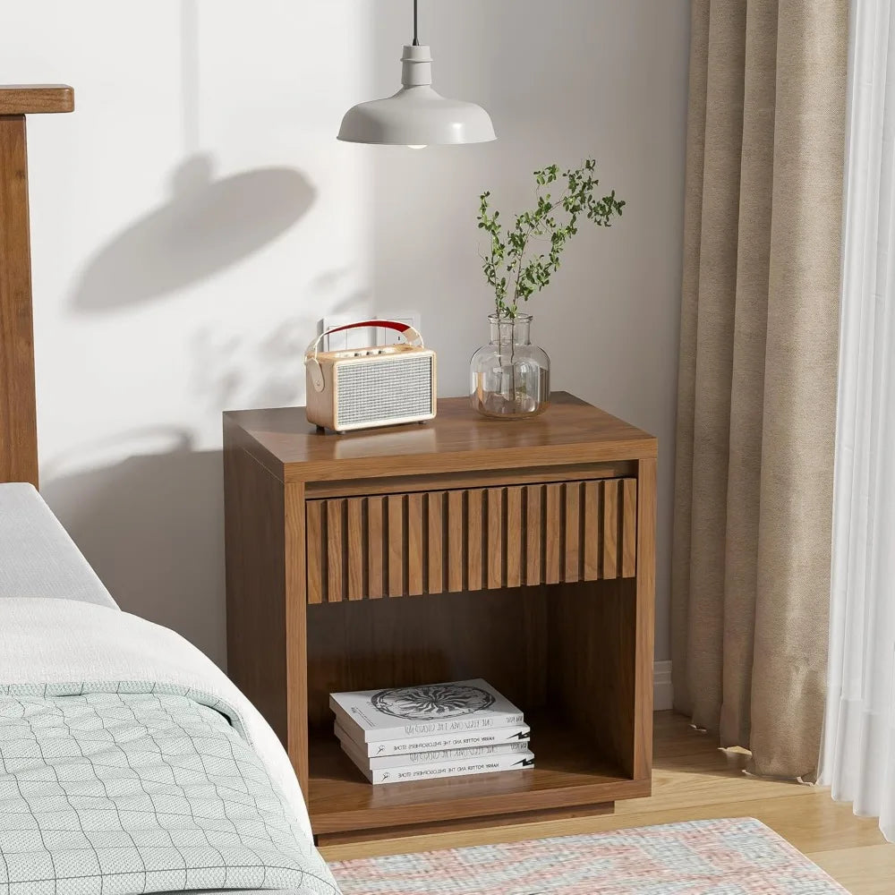 Night Stand Nightstand with Drawer Storage Fluted Bed Side End Table 22.44in, Mid Century Bedside Table for Living Room, Bedroom