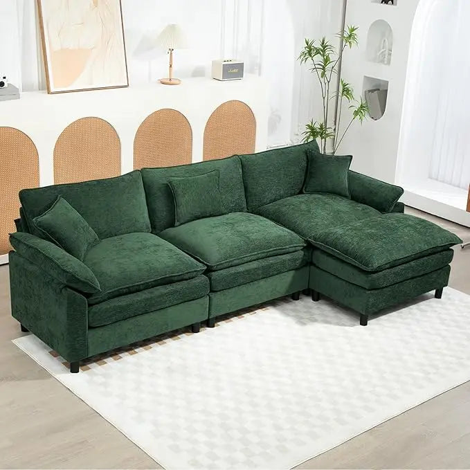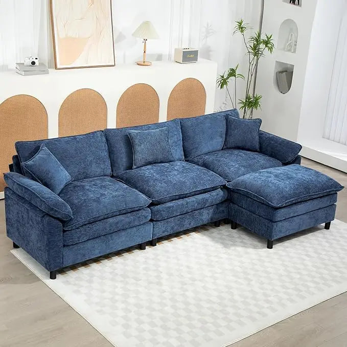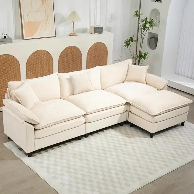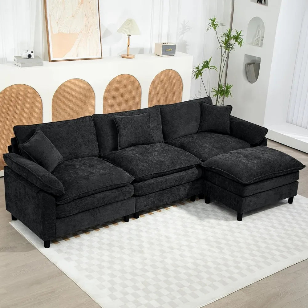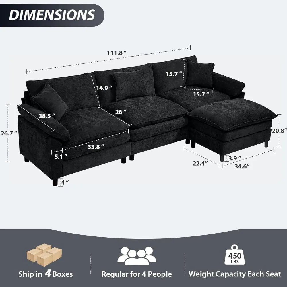 Oversized Modular Sectional Sofa, 111.8 Inch L Shaped Cloud Couch Set, 3-Seat Comfy Convertible Sofa with 1 Movable Ottoman, DIY