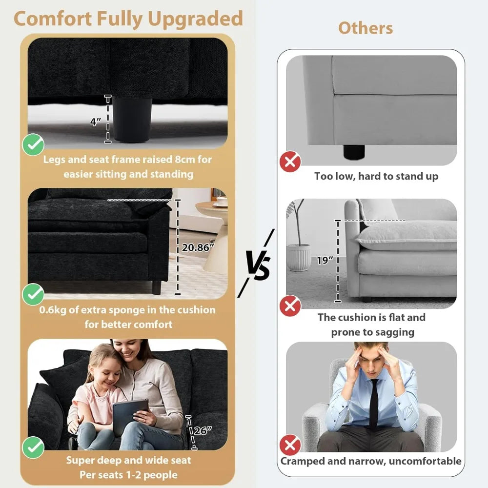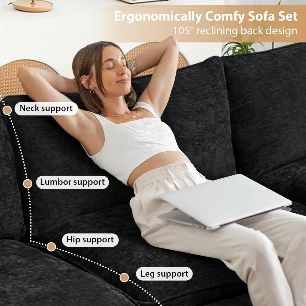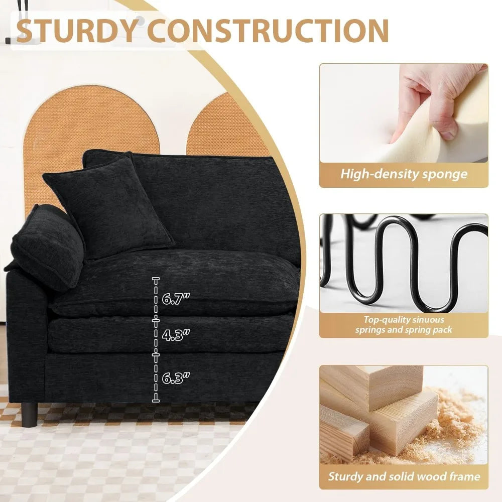 Oversized Modular Sectional Sofa, 111.8 Inch L Shaped Cloud Couch Set, 3-Seat Comfy Convertible Sofa with 1 Movable Ottoman, DIY