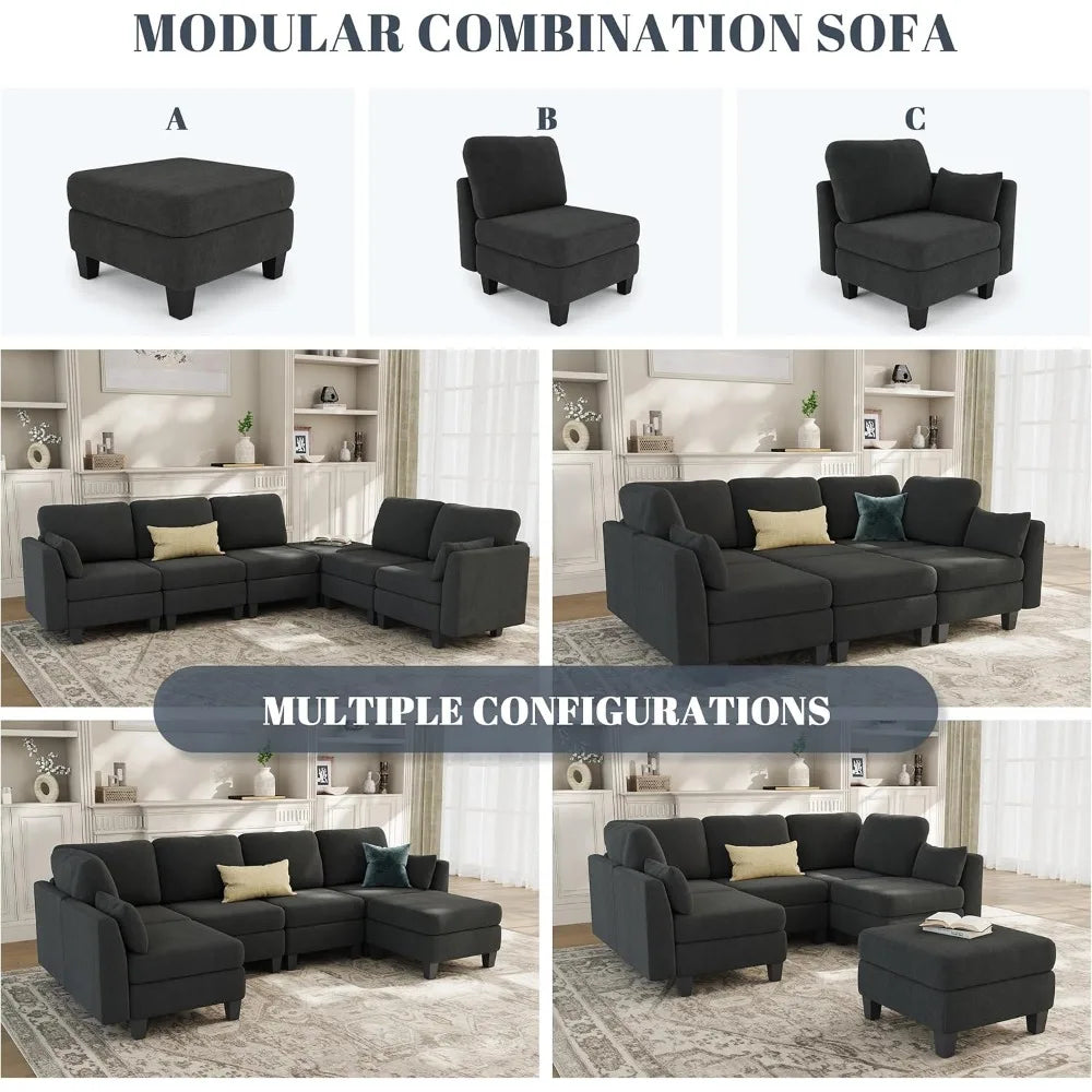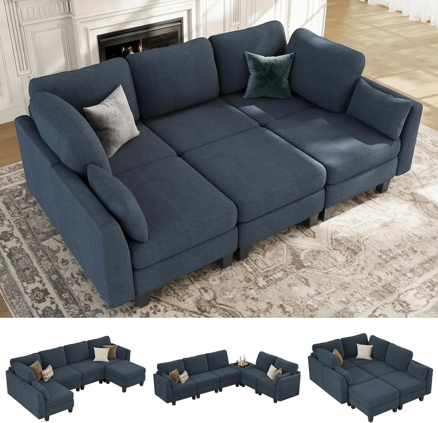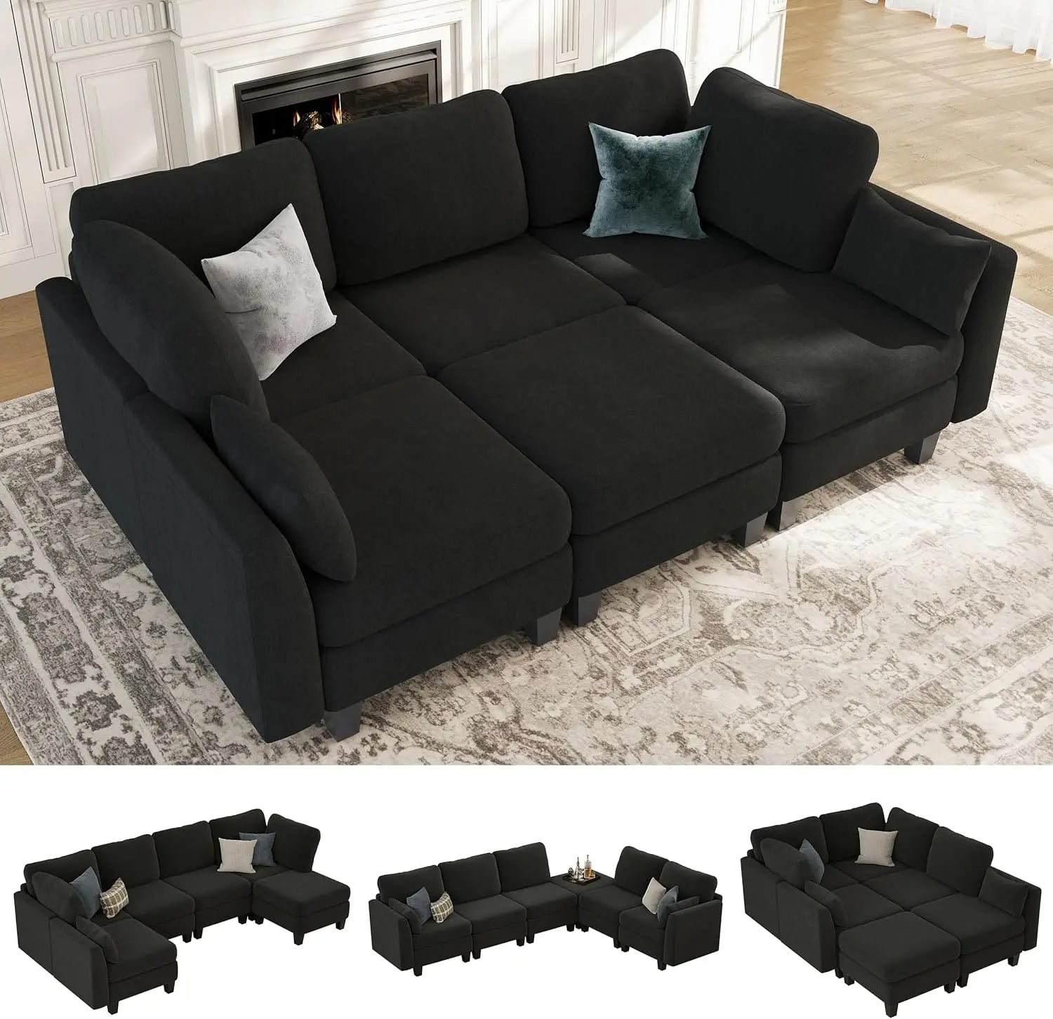 Sectional Sleeper Sofa, 6 Seaters Modular Sleeper Sofa Couch, Comfy Sectionals Couches Bed, Convertible Sofas with Ottomans, Mod