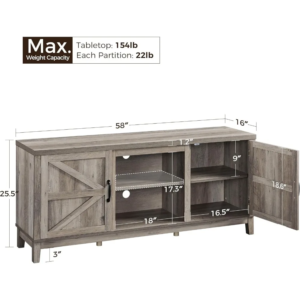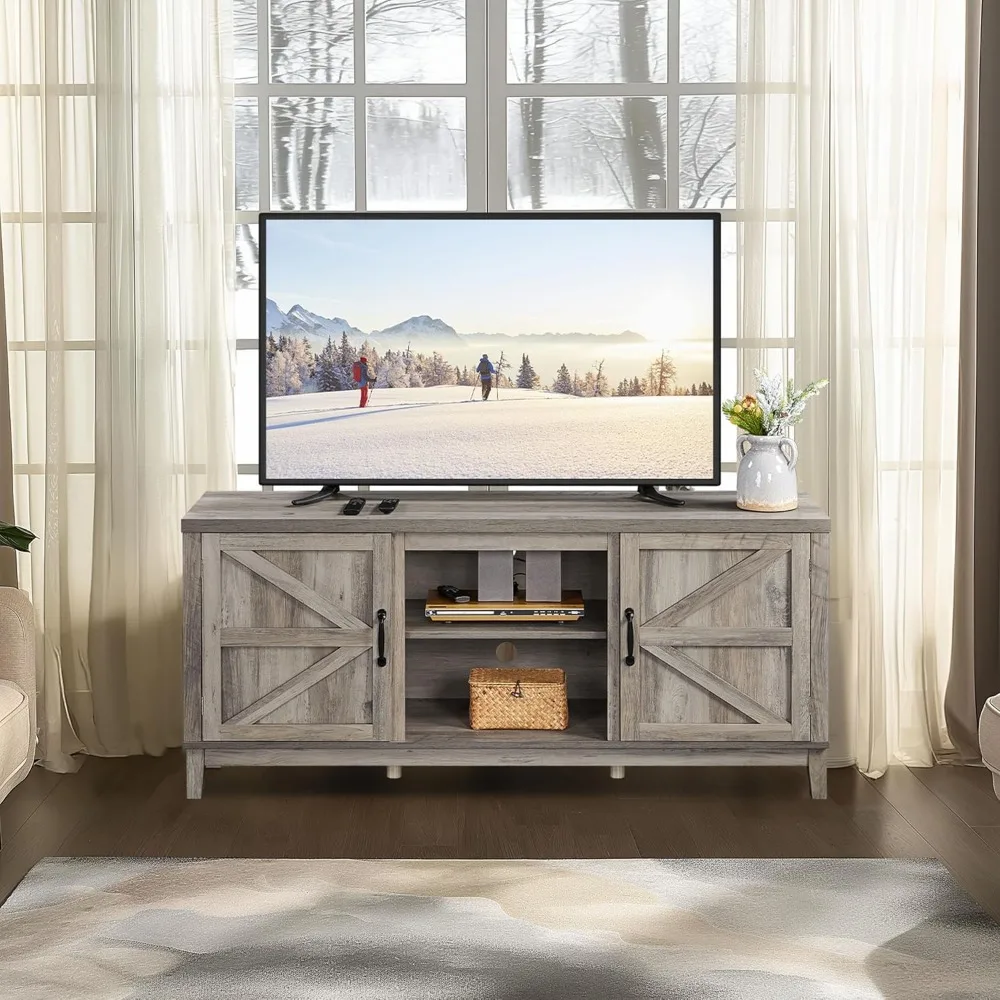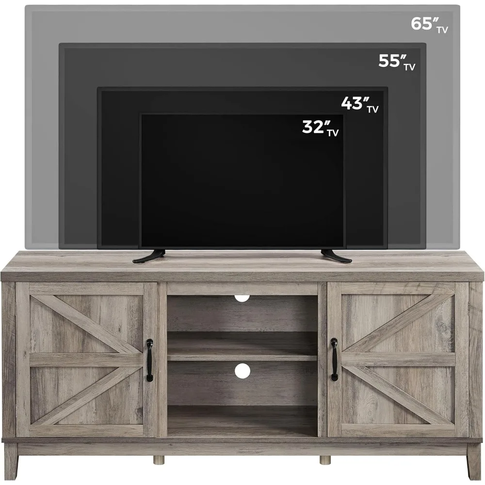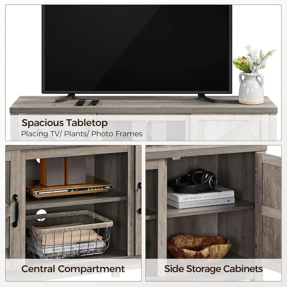 TV Stand for 65 Inch TV, Farmhouse TV Console Table for Living Room, Tall Entertainment Center with Double Barn Doors