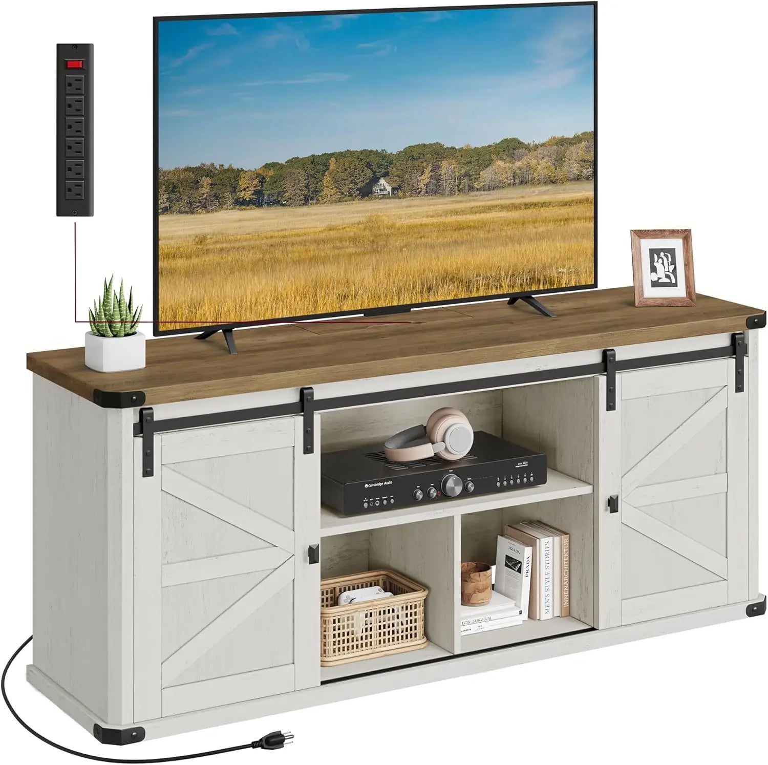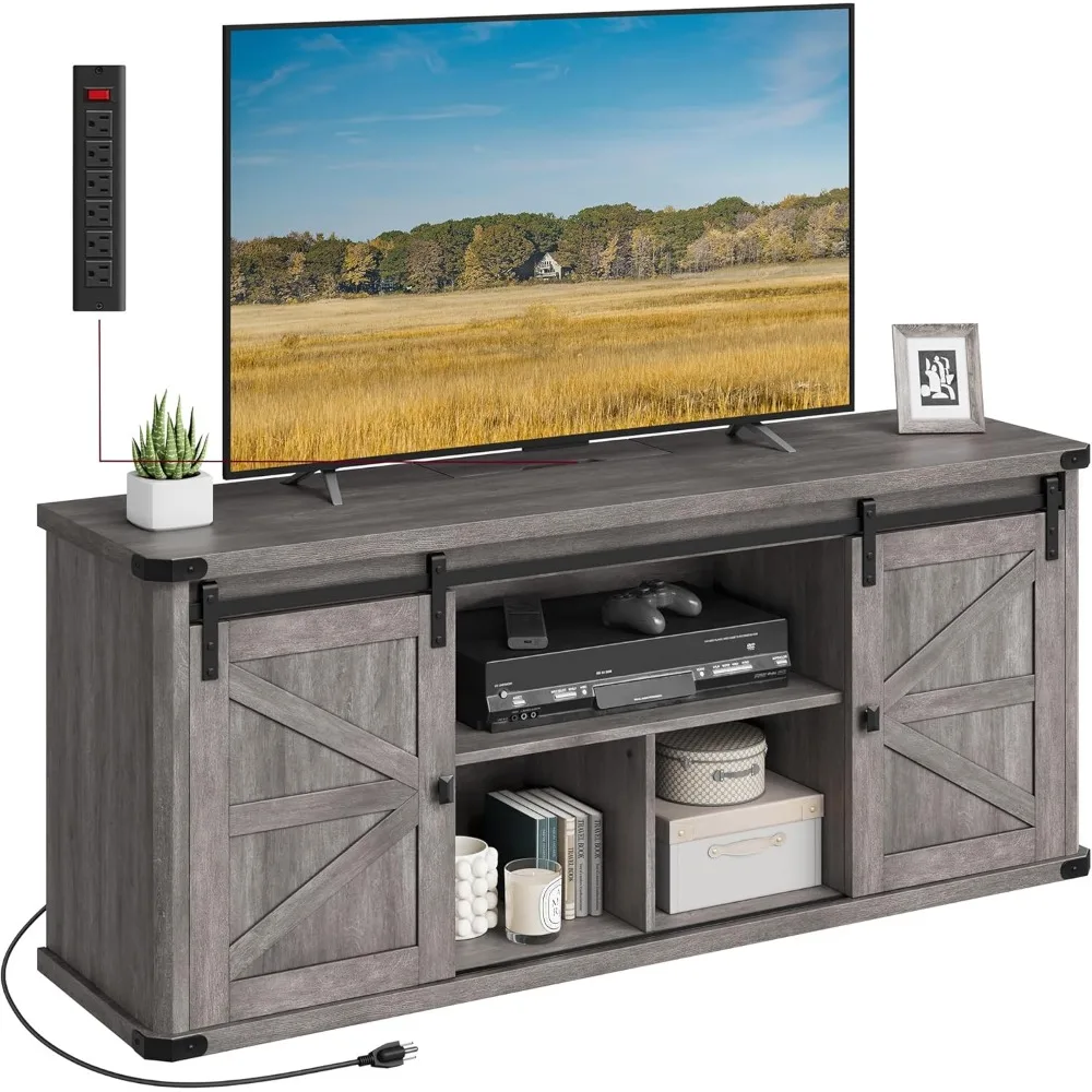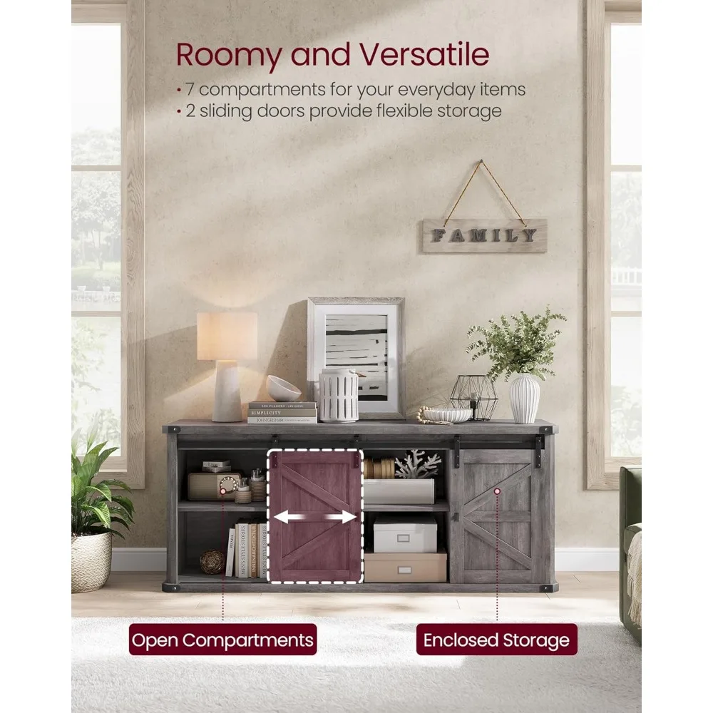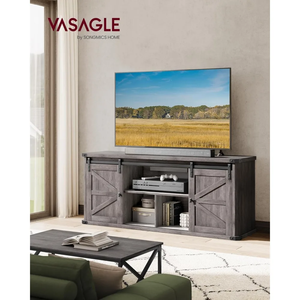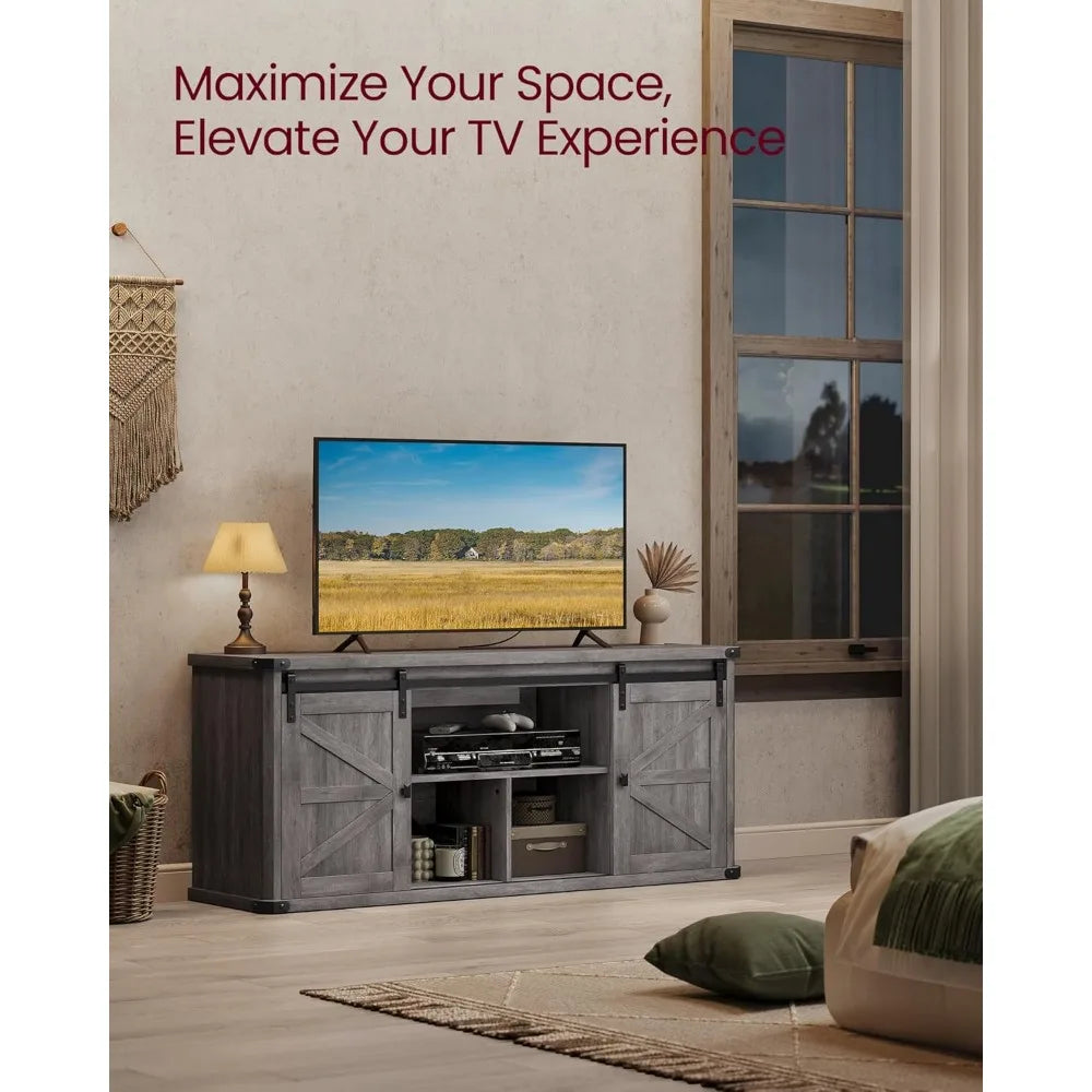 TV Stand for TVs up to 65 Inches, Farmhouse Entertainment Center with Sliding Barn Doors, TV Console Table for Living Ro