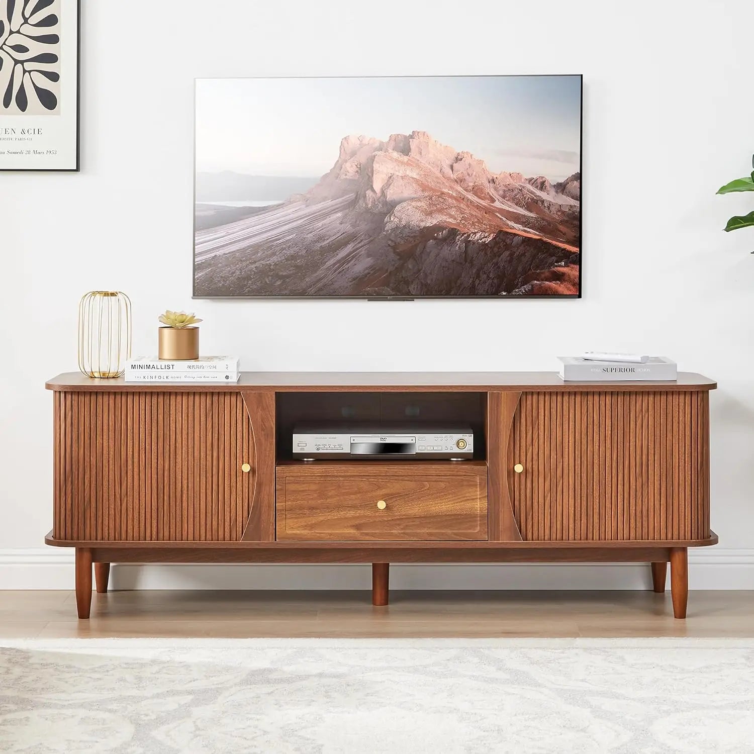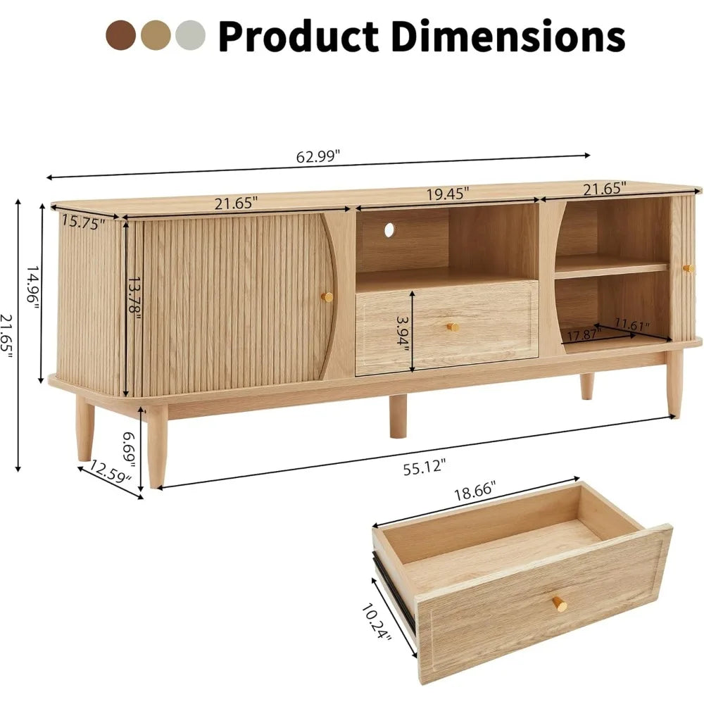 - 【Multi-purpose TV Stand】 This media console with drawer instantly upgrades any home decor style with its fluted finish, curved edges, and wood grain. The simple and elegant design perfectly matches various furniture styles. It is not only a TV stand, but also can be used as a storage cabinet, entertainment centre. It is perfect for living room, bedroom, apartment. office, etc.