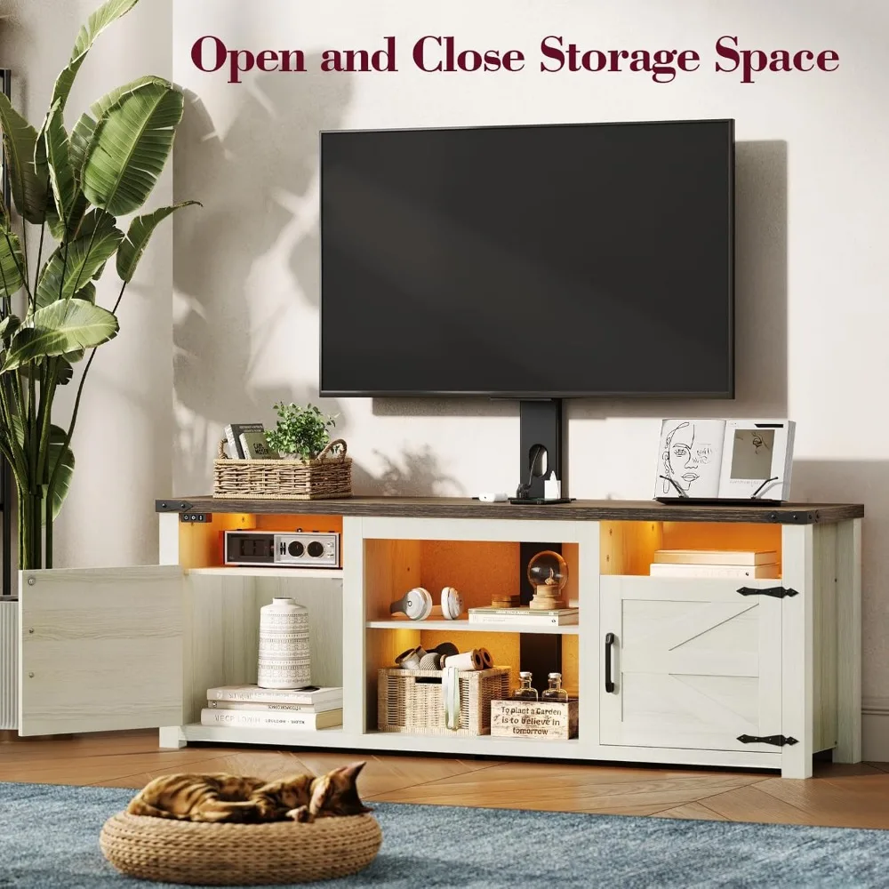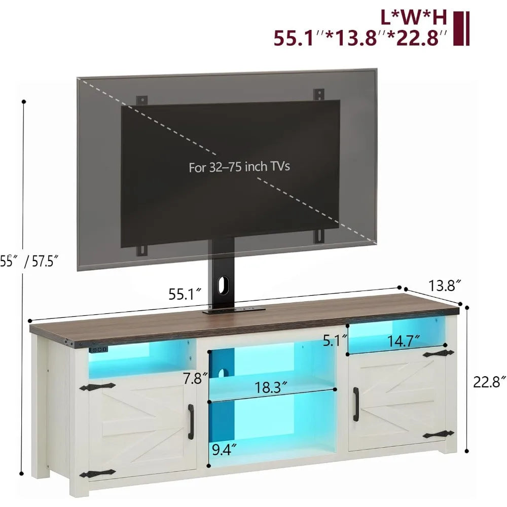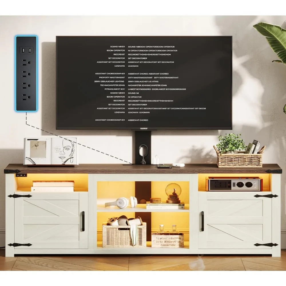 TV Stand with Mount, Farmhouse TV Stand for 32-75 inch TVs with Charging Station LED Lights, Entertainment Center with Storage f