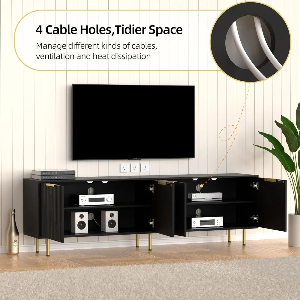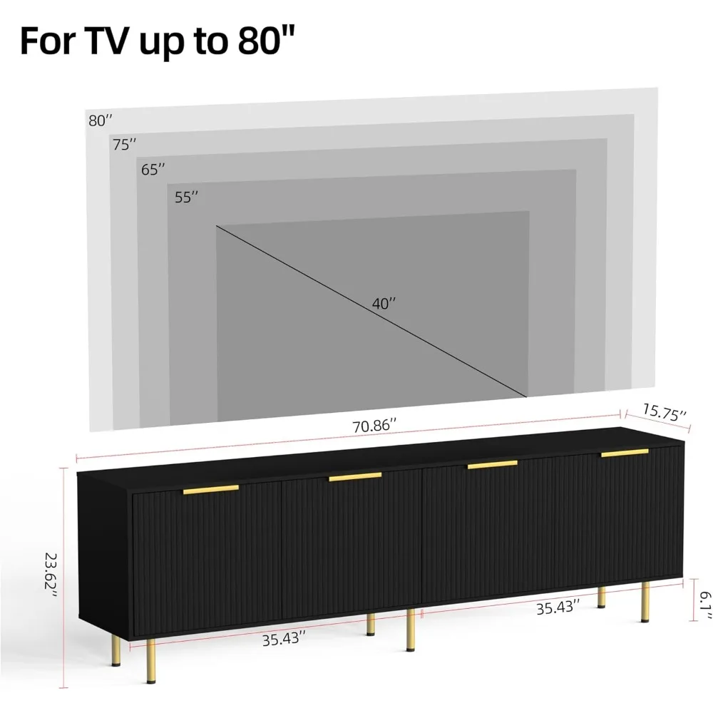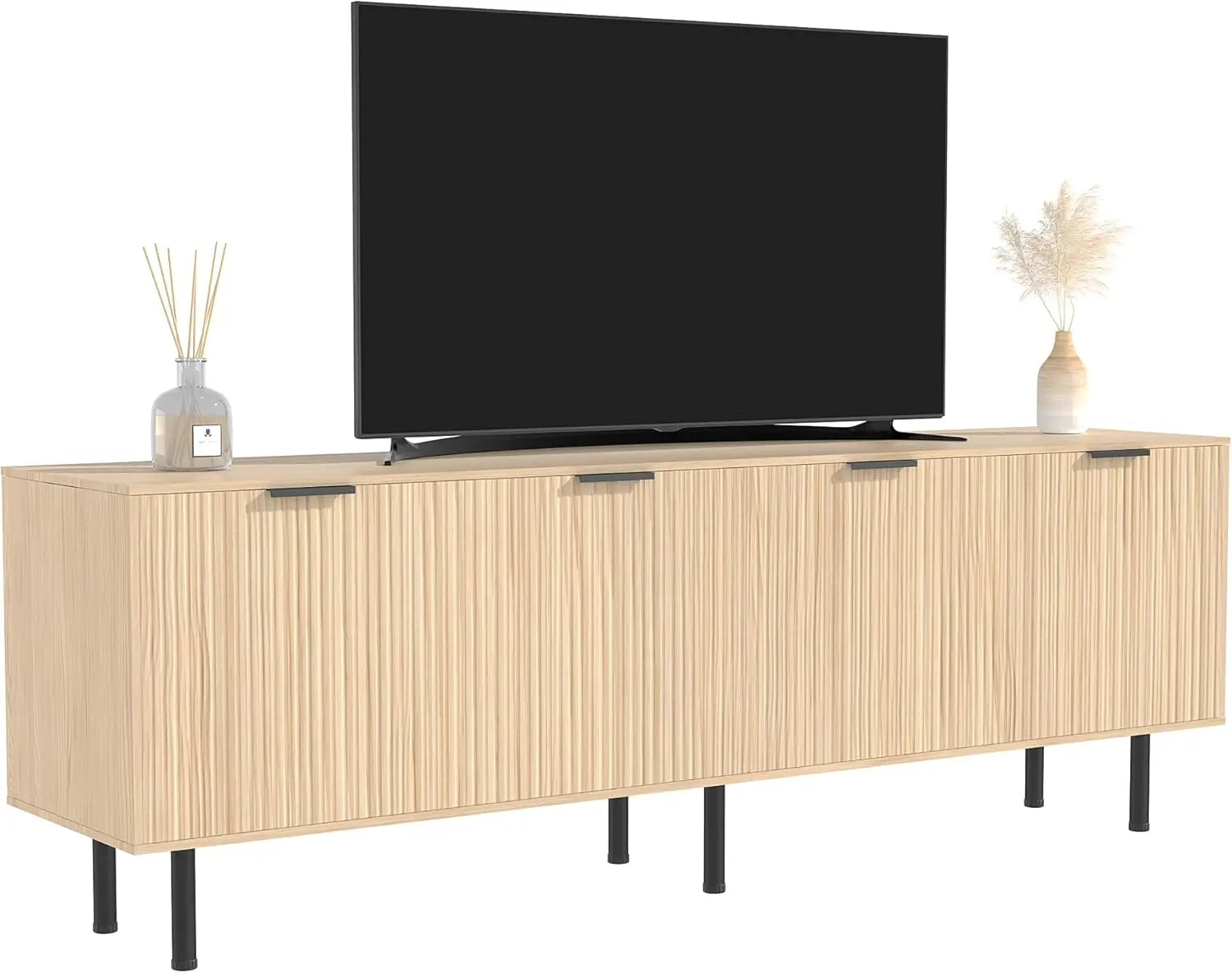 TVs Stand for 80 Inch TV, Fluted TV Stand for Living Room, Mid Century Modern TVs Stand with Adjustable Shelf, TV Entertainment