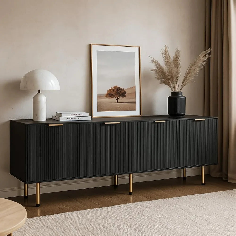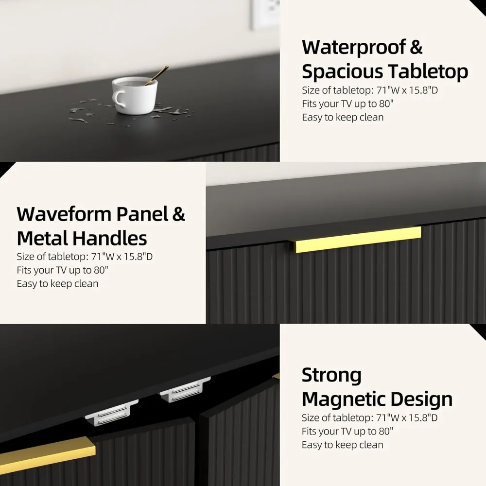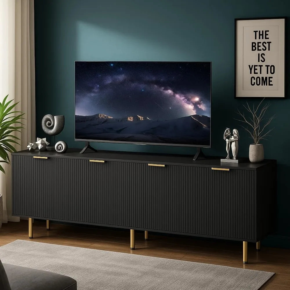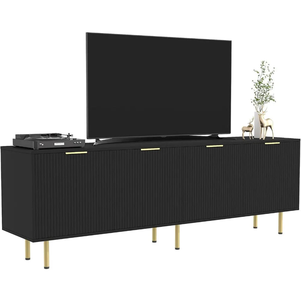 TVs Stand for 80 Inch TV, Fluted TV Stand for Living Room, Mid Century Modern TVs Stand with Adjustable Shelf, TV Entertainment