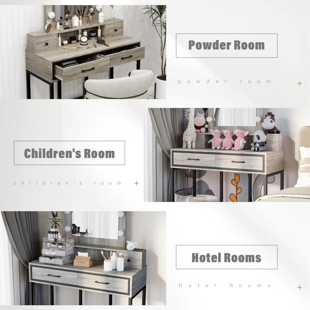 - 👑【Upgraded Vanity Table】 user-friendly makeup vanity simplifies assembly and comes in white, light gray and brown colors to suit different preferences and finishing styles. Vanity table are also ideal gift for your loved ones on special occasions like birthdays, Mother's Day, Christmas, and Valentine's Day. You can buy it with vanity stool at .