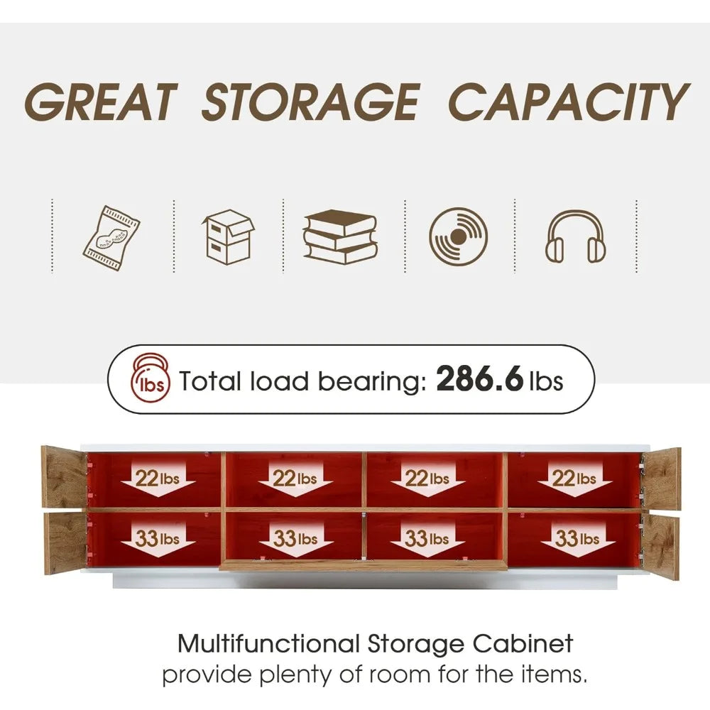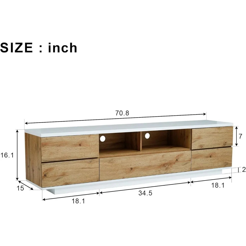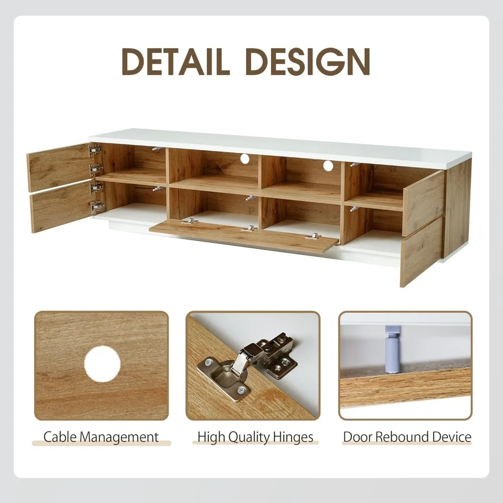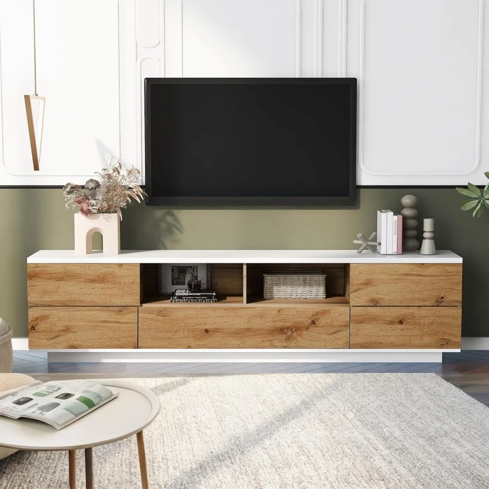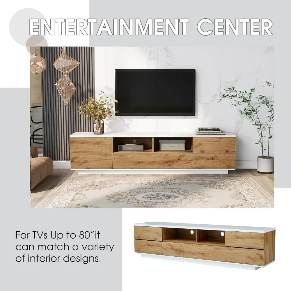 Wood TV Stand Entertainment Center with Storage Cabinets & Open Shelves, Modern TV Console Table for TVs Up to 80” for Liv