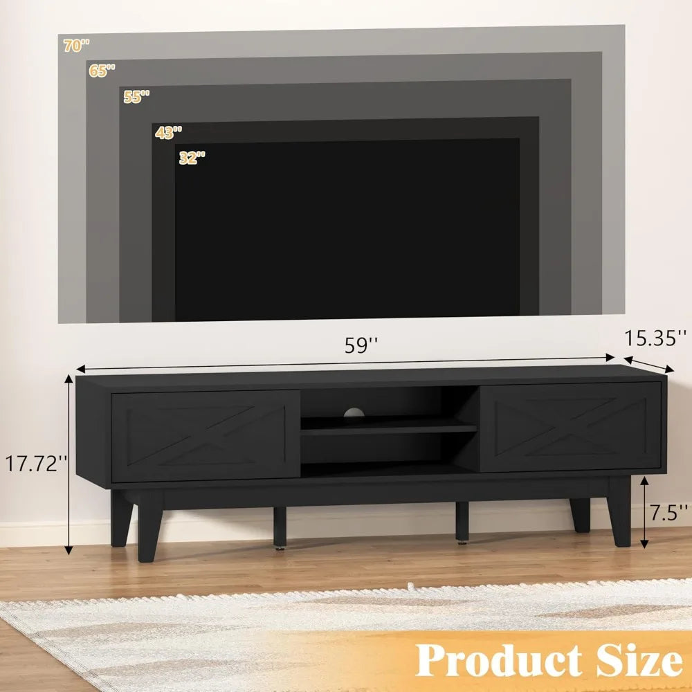 - Ideal Dimensions: Measuring: 59"L × 15.35"W × 17.72"H, this TV stand is crafted from durable P2-engineered wood for lasting durability. The oversized waterproof, scratch-resistant tabletop accommodates TVs up to 55", 65", or 70". Elevated 5.2-inch feet create clearance for robot vacuums to clean freely underneath