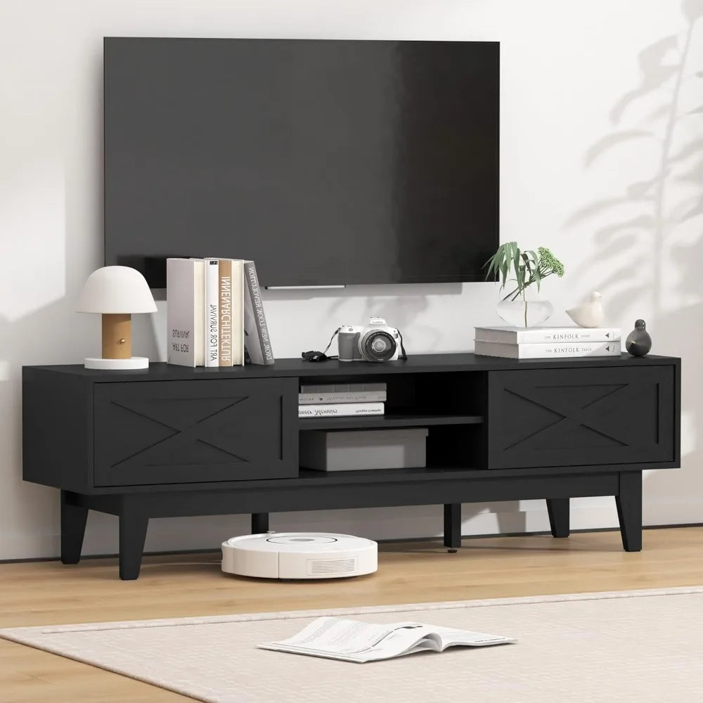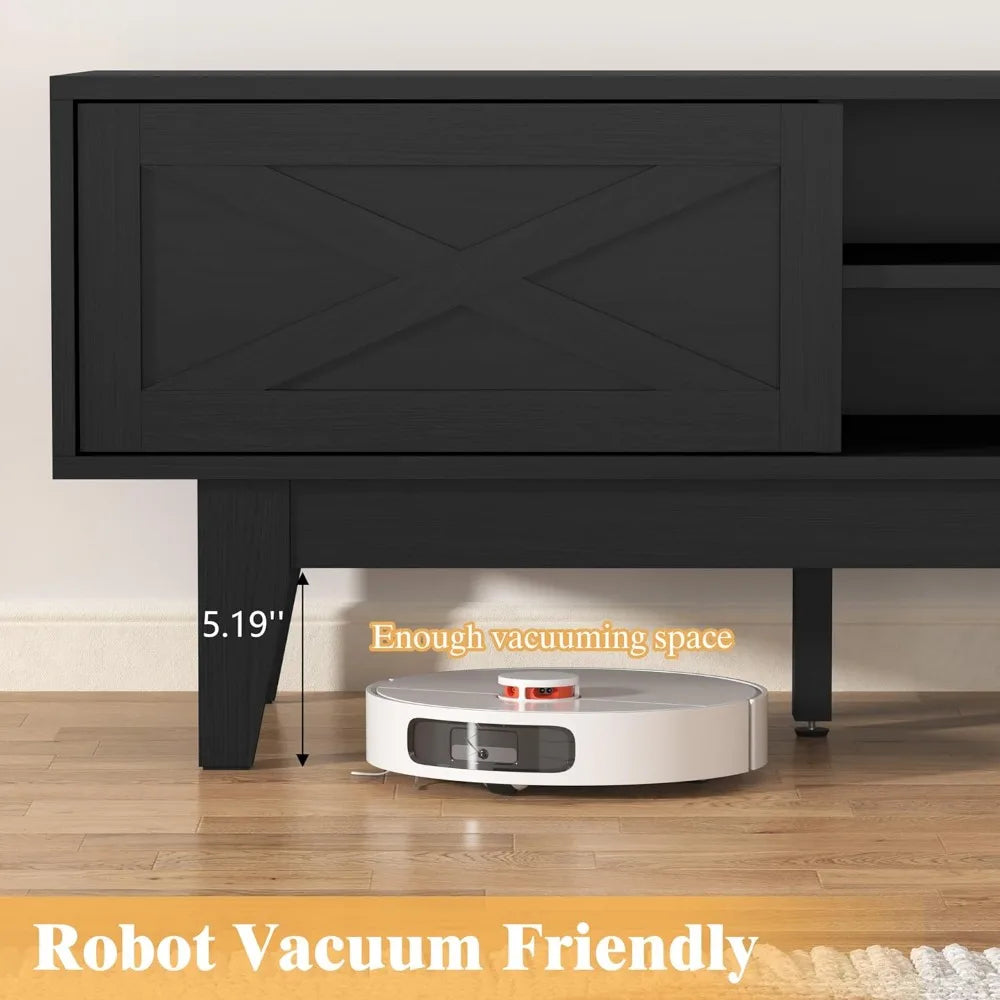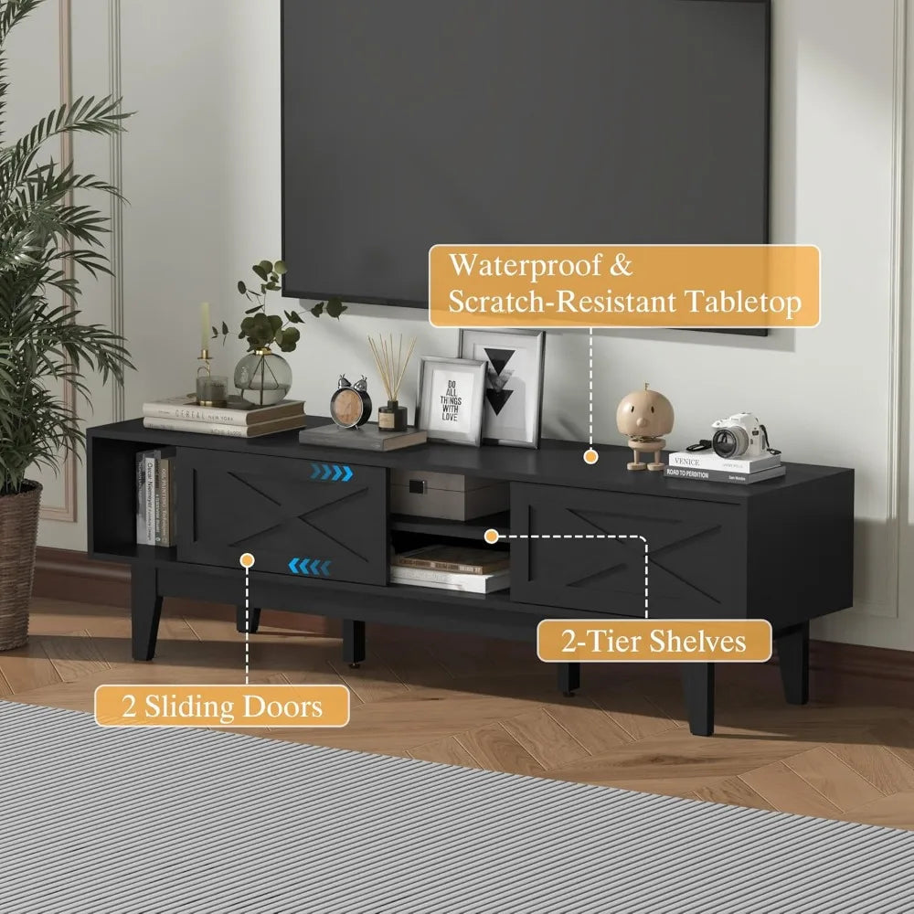 - Ample Storage Space: Featuring 2 large side compartments and 2-tier shelves with wooden sliding doors, this entertainment center ensures organized storage for gaming consoles, DVDs, and accessories while promoting airflow to improve heat dissipation