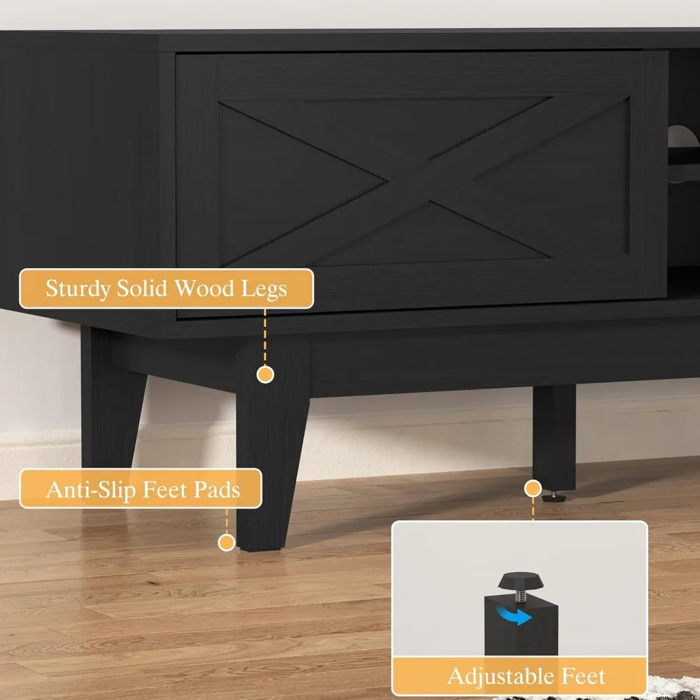- Sturdy & Adjustable Feet: Featuring 4 anti-slip solid wood legs and 2 central adjustable feet, this farmhouse television stand stabilizes on uneven floors while protecting the flooring from scratches