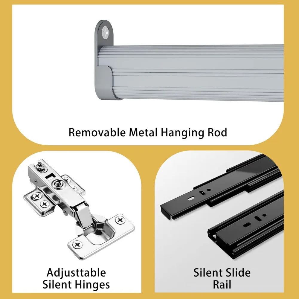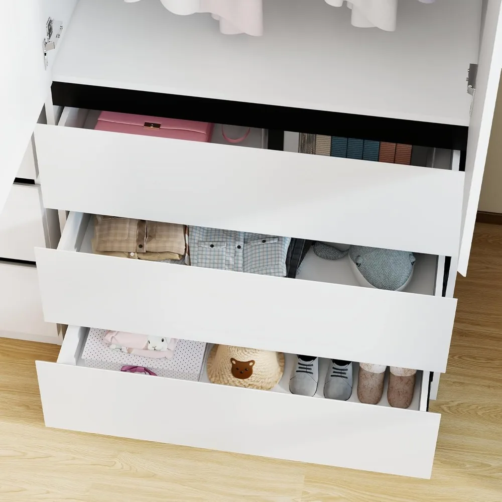 Wooden Wardrobe Closet with 2 Doors: 75" Bedroom Armoire Wardrobe Closet with 3 Drawers, White Cabinet with Hanging Shelves, Lar